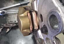 De nye bremsklodser bag, som jeg fik vinkelslibet en skrå kant så at bremseskiven bag