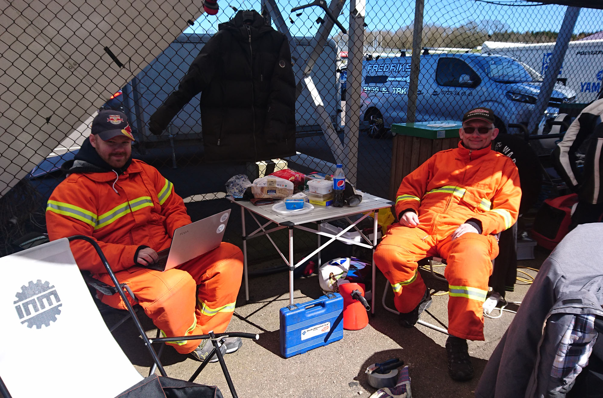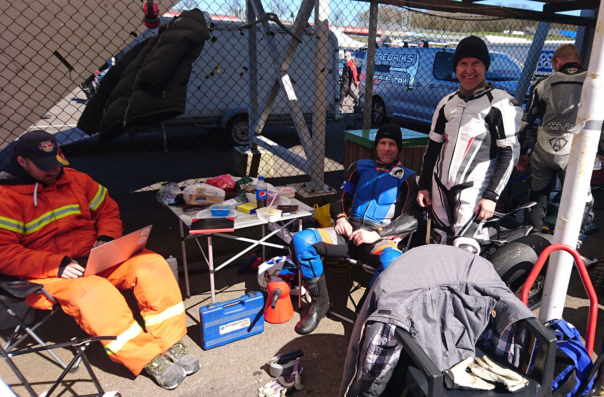 og branddragter brugtes til at holde varmen før og efter kvalifikationskørsler og medens vi ventede