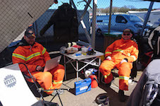 Så hentede jeg Søren , vores pitchef der holder styr på aktiviteterne i pit, tankning,