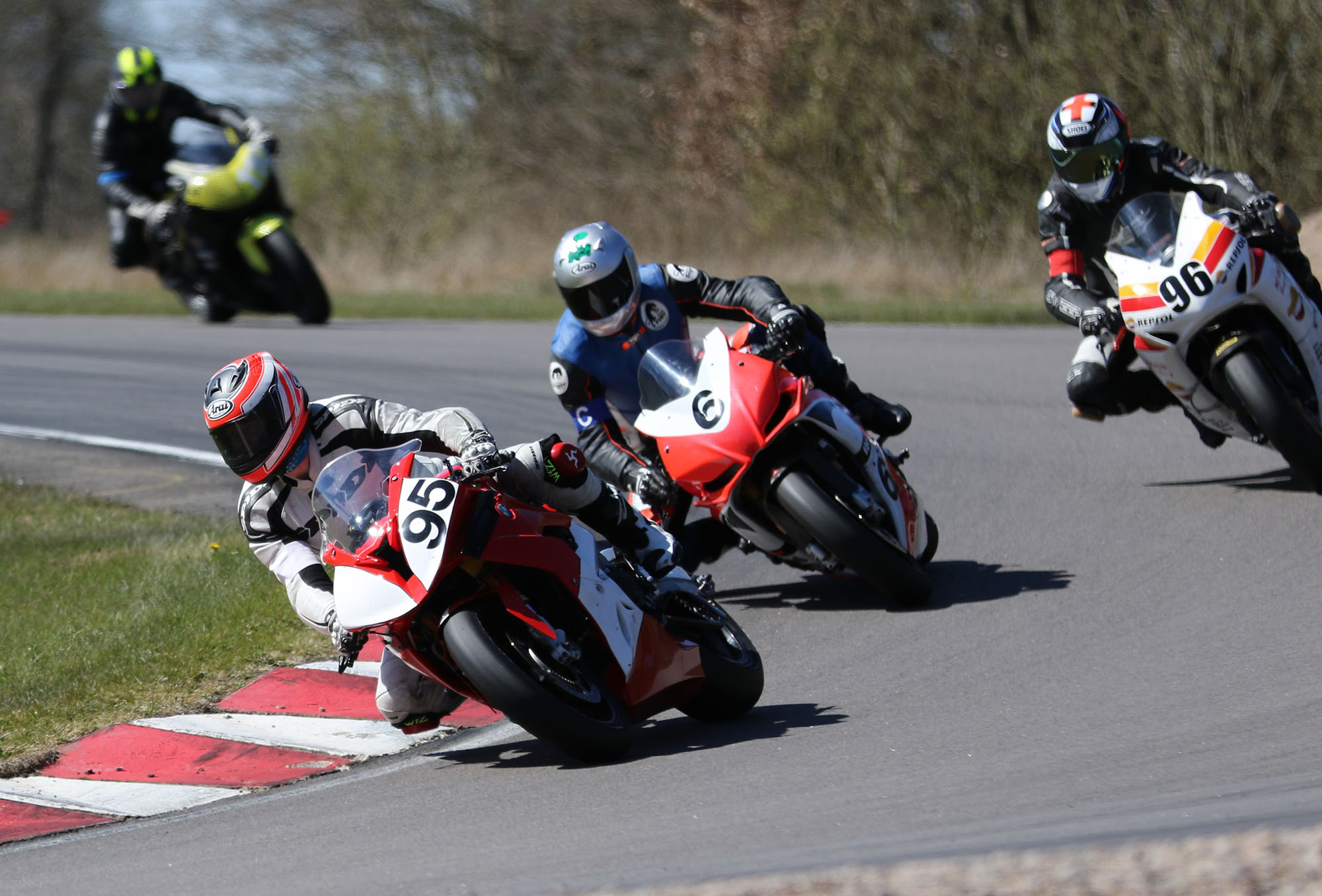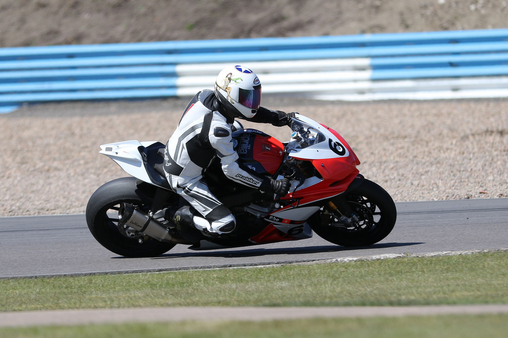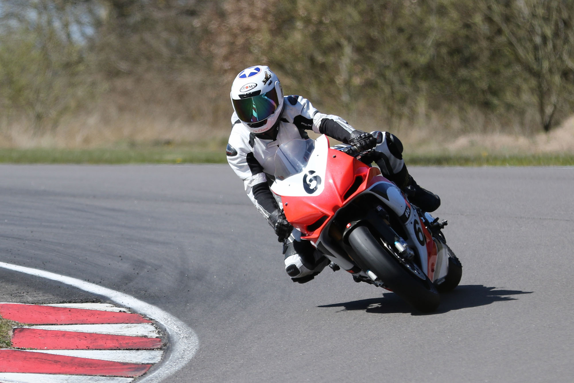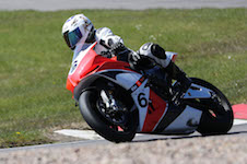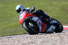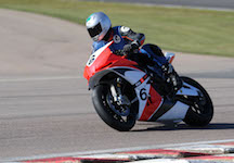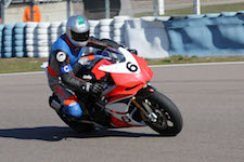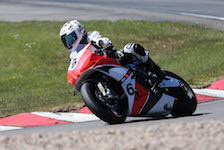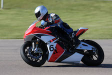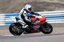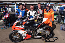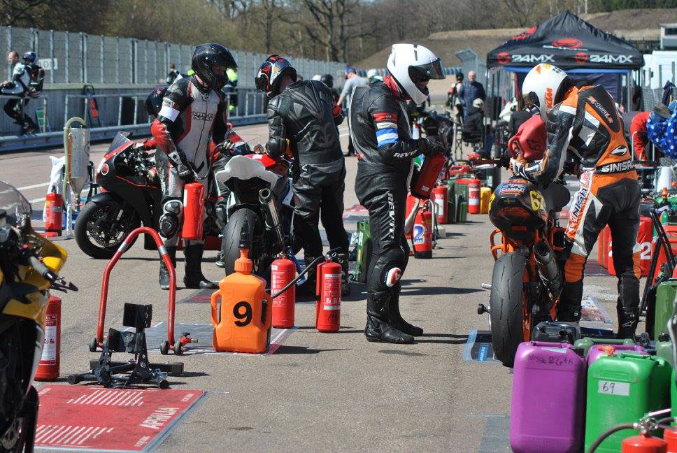 på mange baner i England), og vi hade ændret på clip-ons og vinkeln på bremse og koblingsgreben.