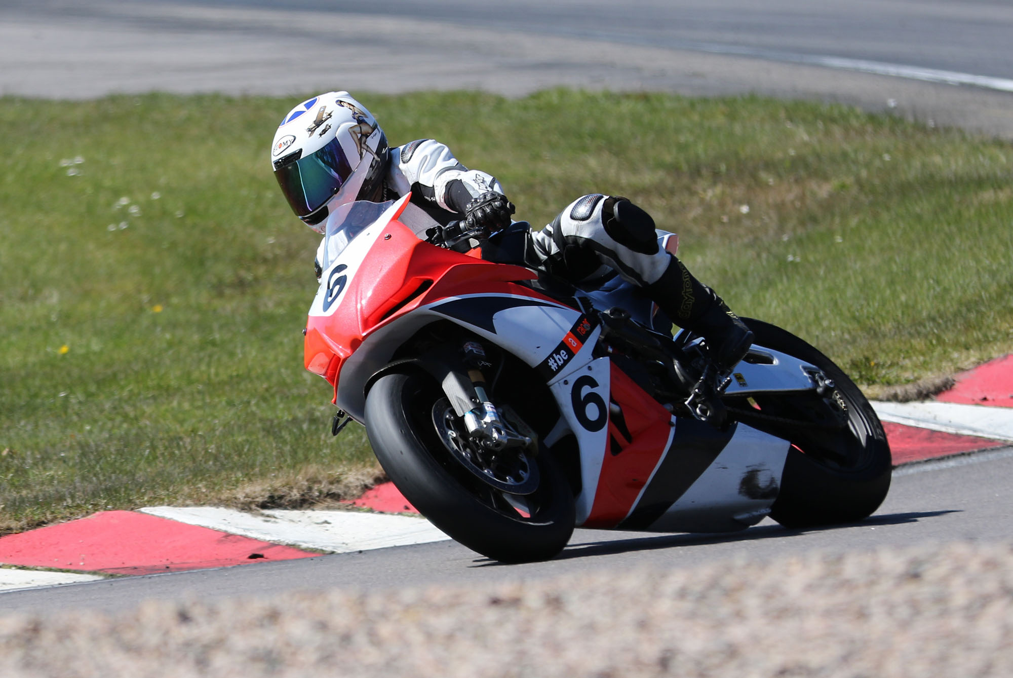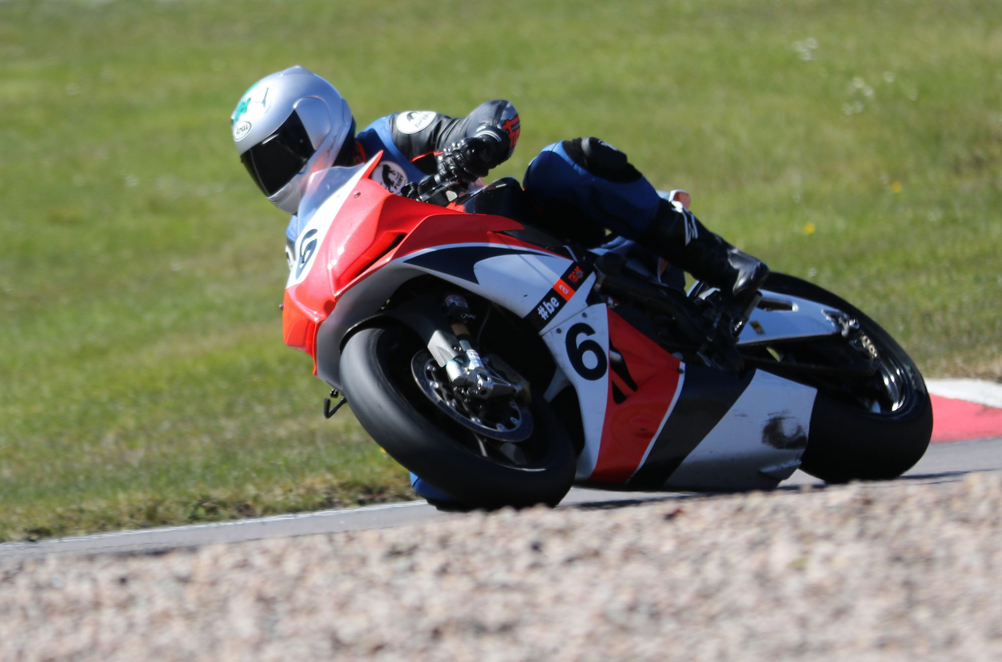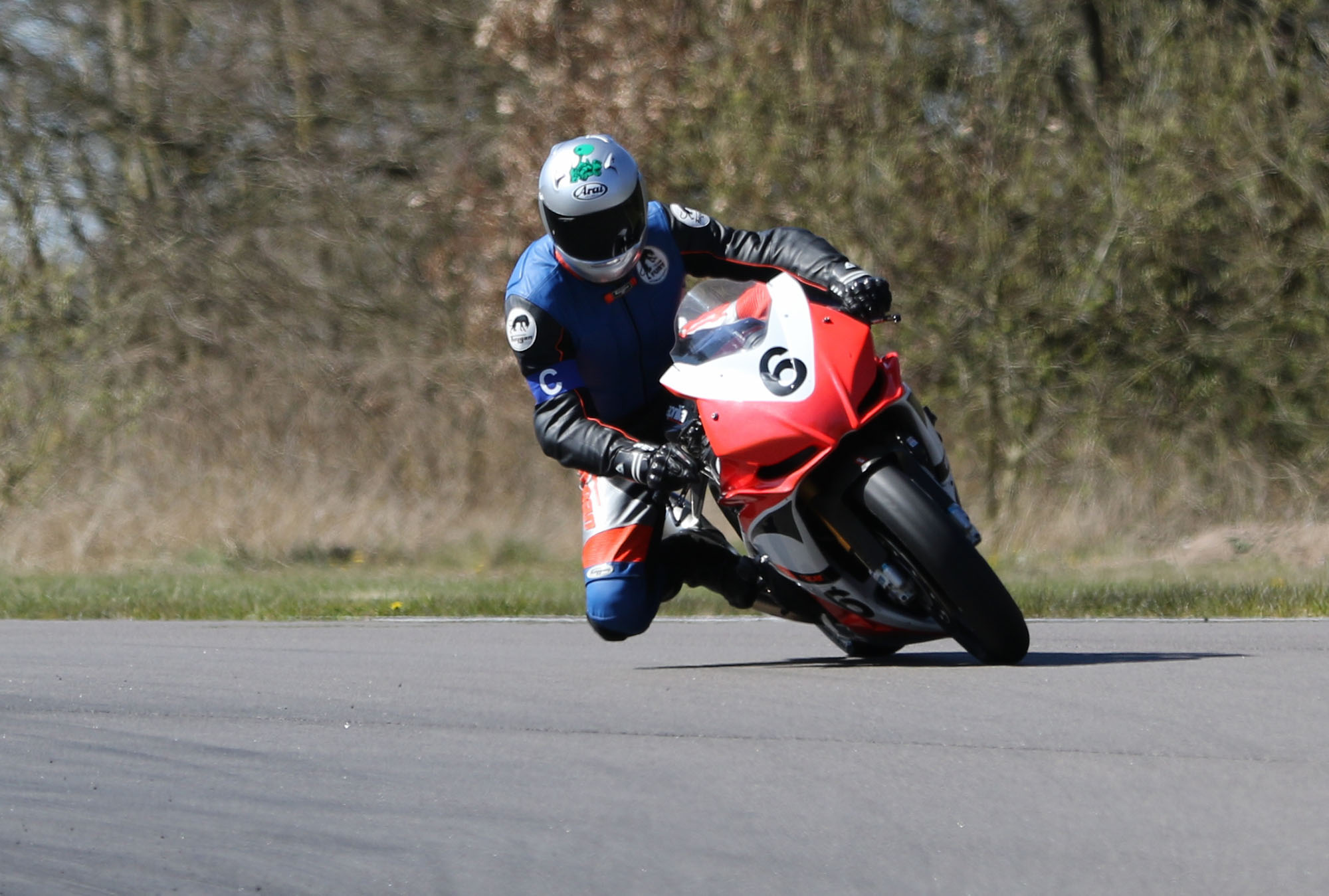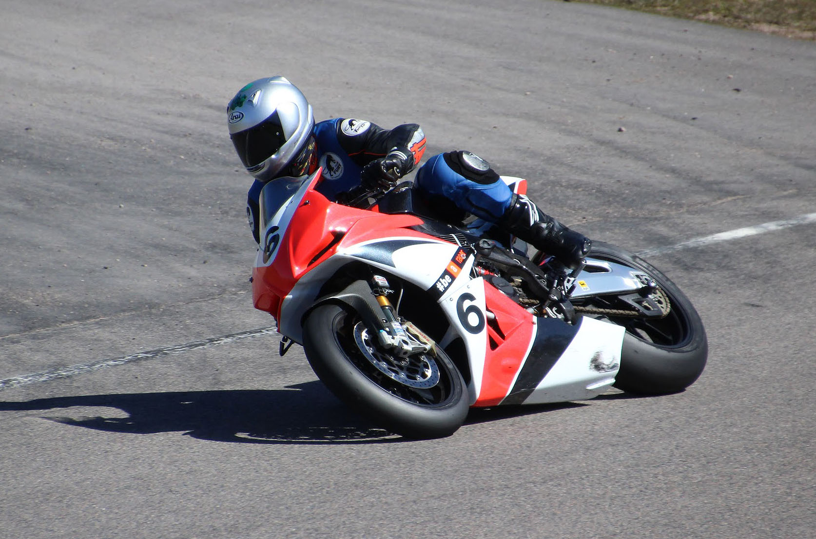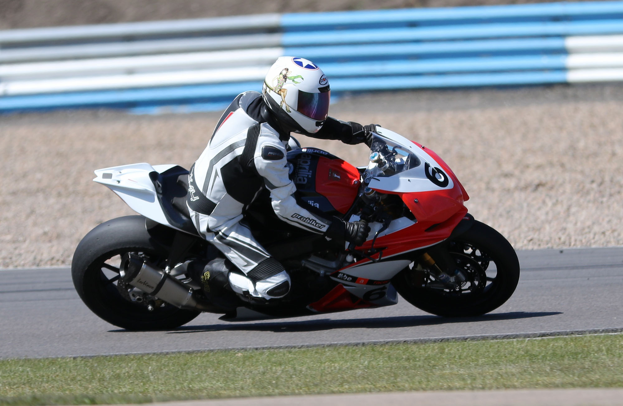 på mange baner i England), og vi hade ændret på clip-ons og vinkeln på bremse og koblingsgreben.
