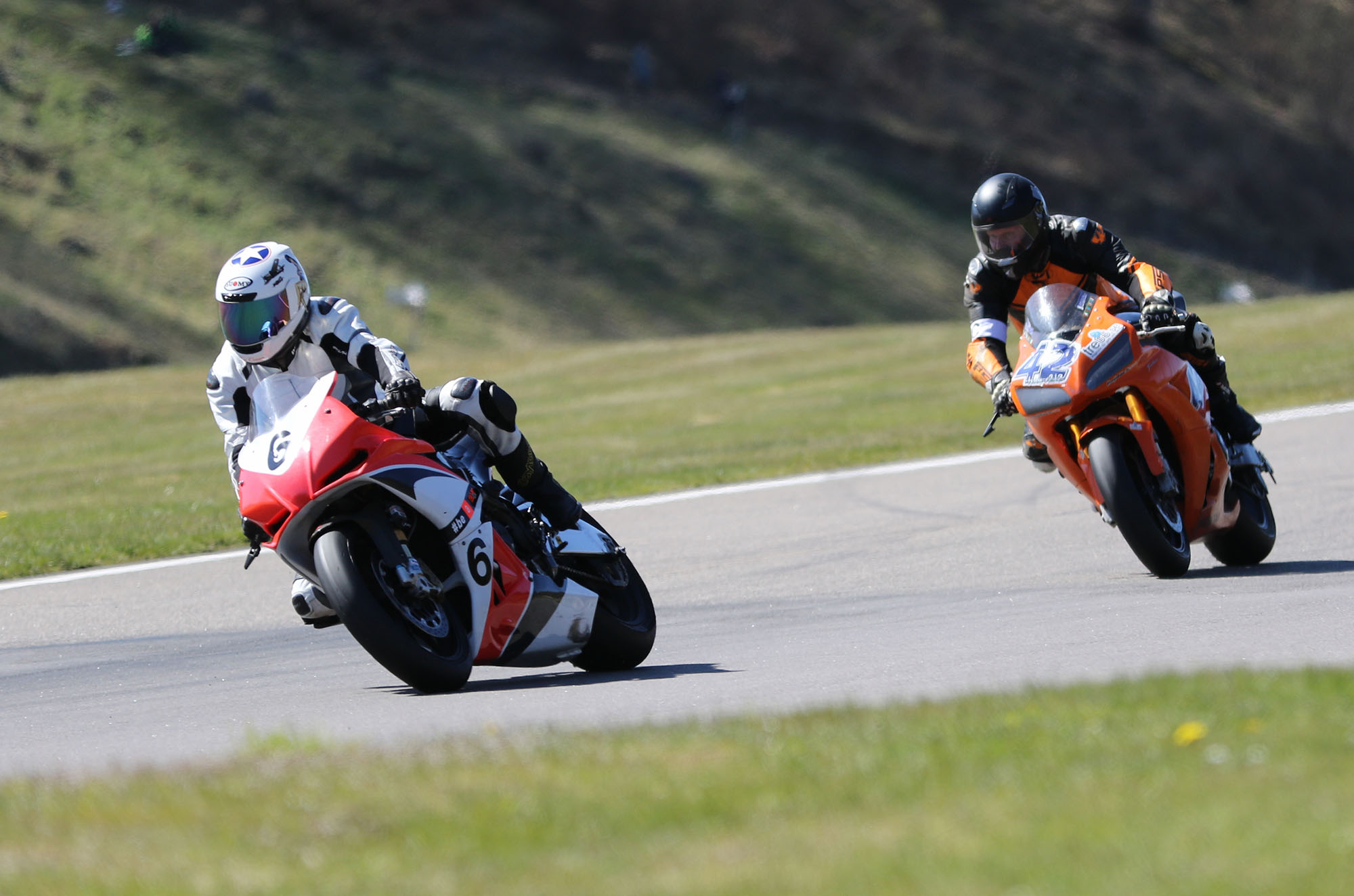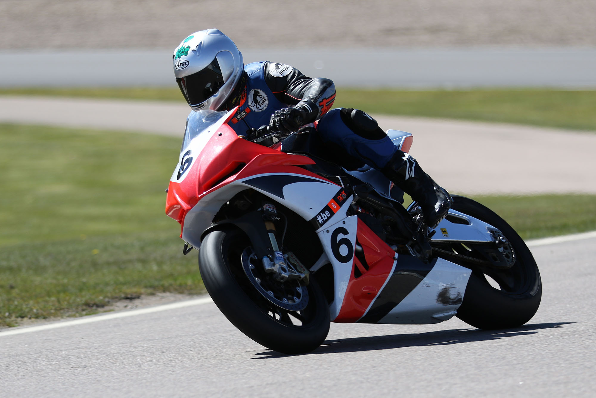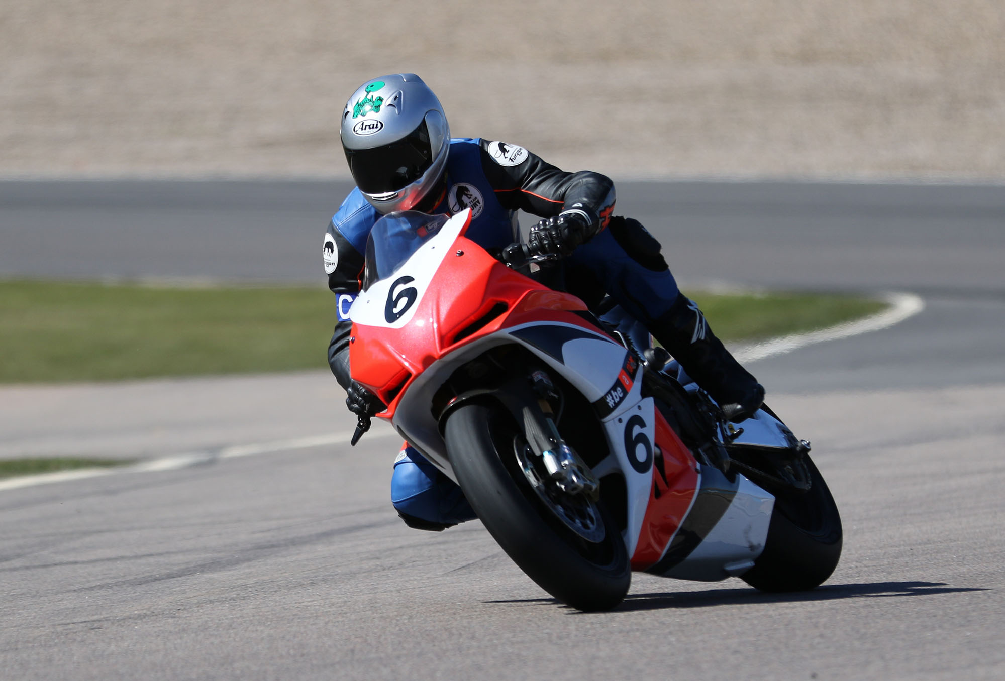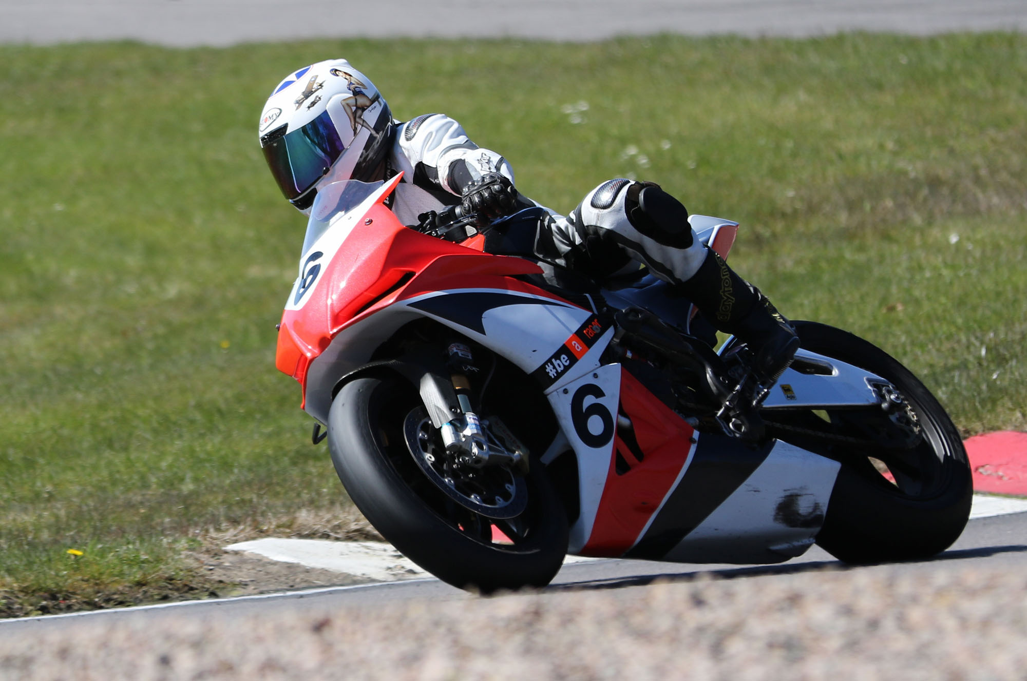 på mange baner i England), og vi hade ændret på clip-ons og vinkeln på bremse og koblingsgreben.