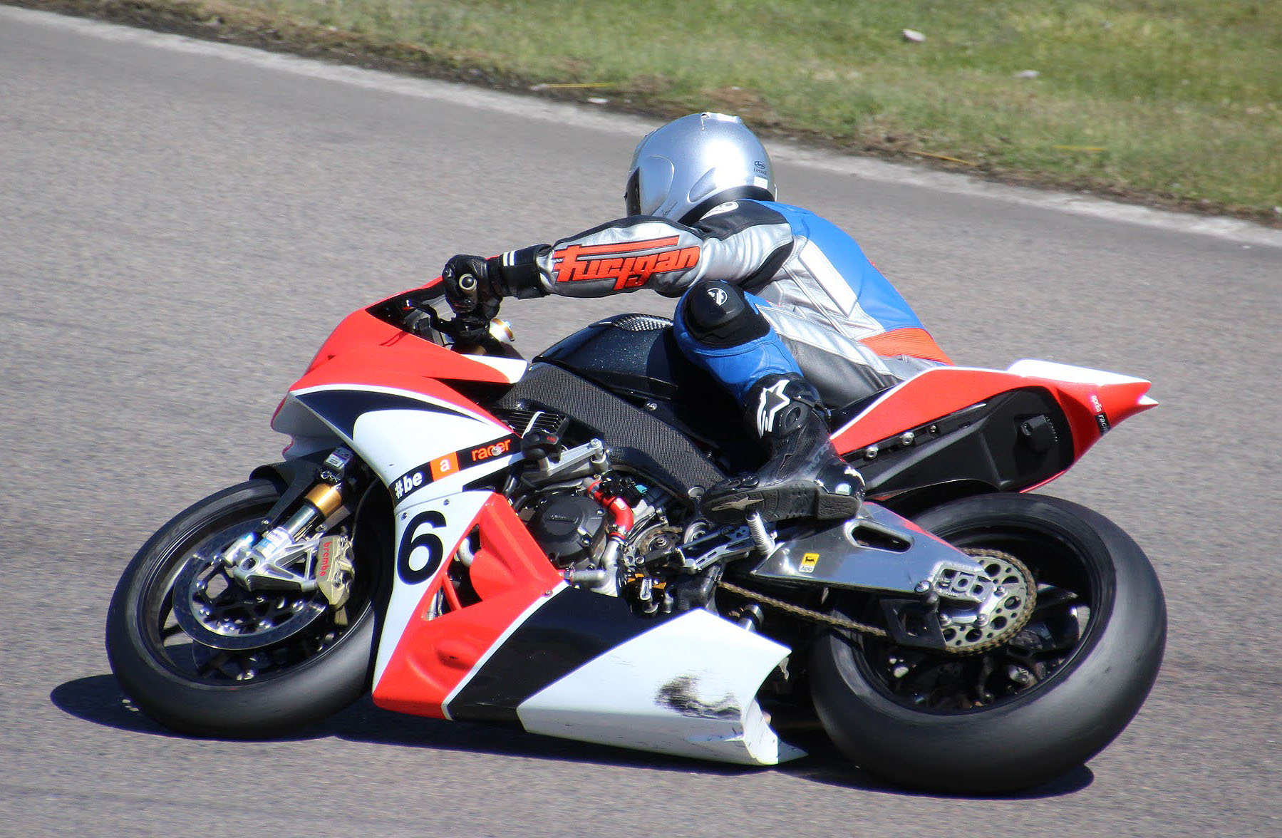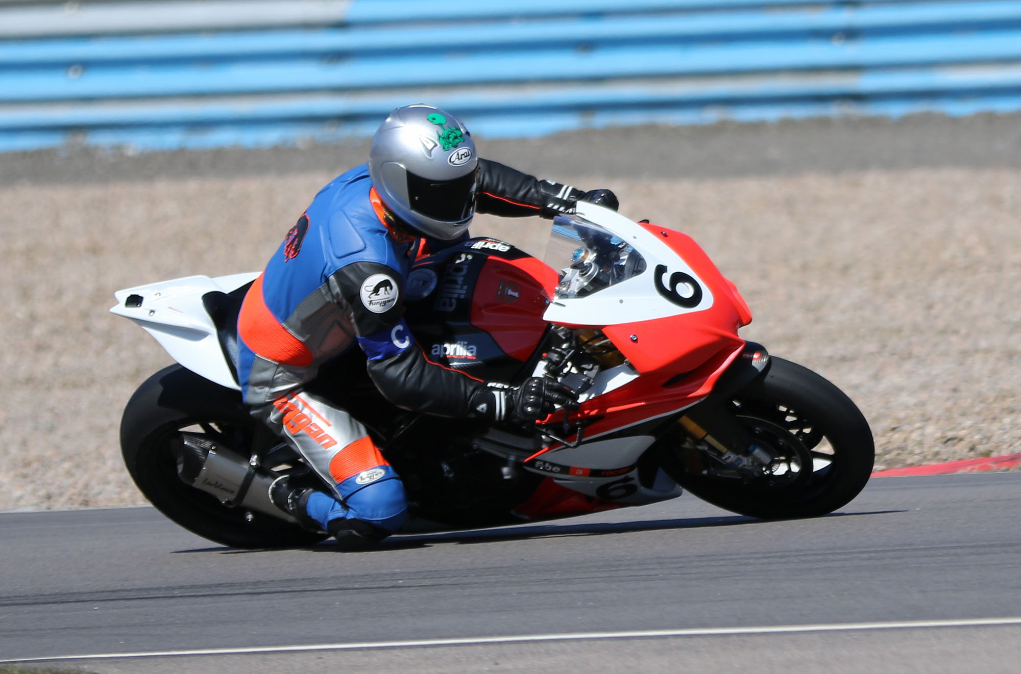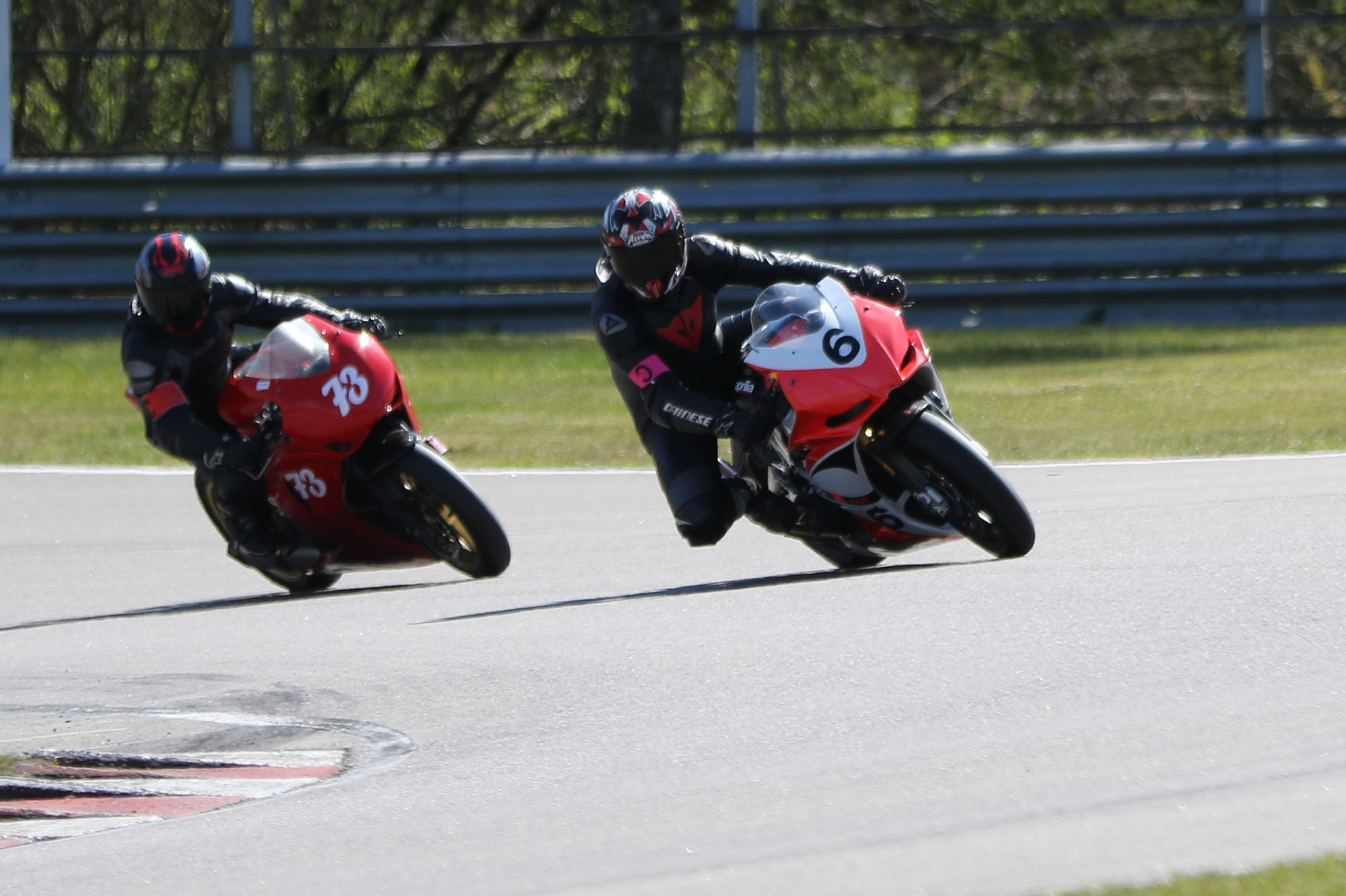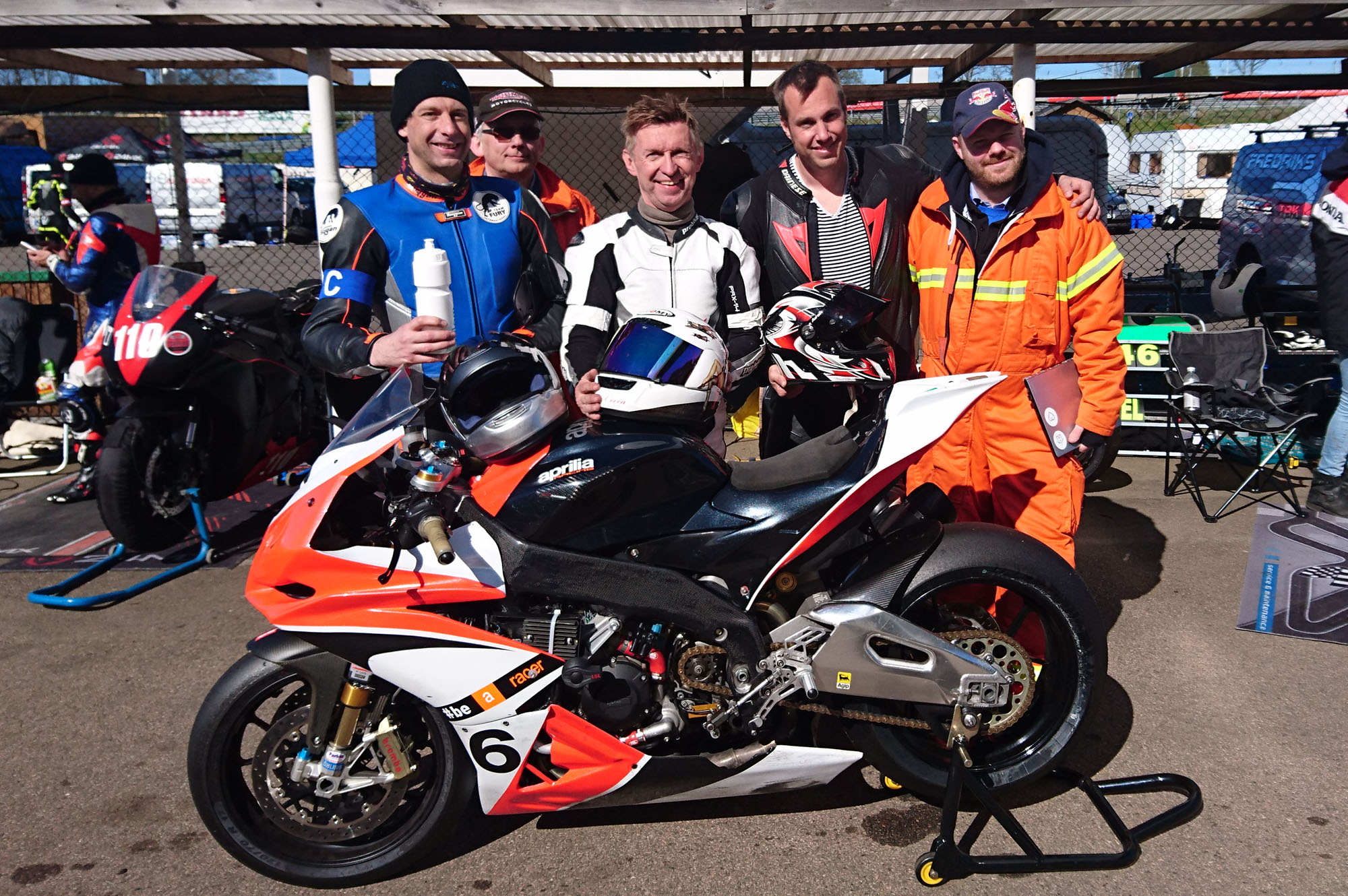 nyde de nye slicksdæk. Vi manglede også erfaring for hvor meget bensin Aprilia'en ville sluge