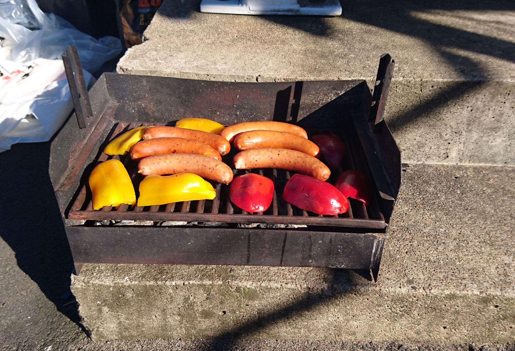 Vi er et dansk team så hygge er vigtig. Vi starter grillen og tager frem kød, tilbehør og