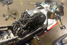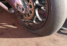en af egerne. De superlette og dyre Aprilia Factory fælge kan alligevel ikke tåle racing belastning