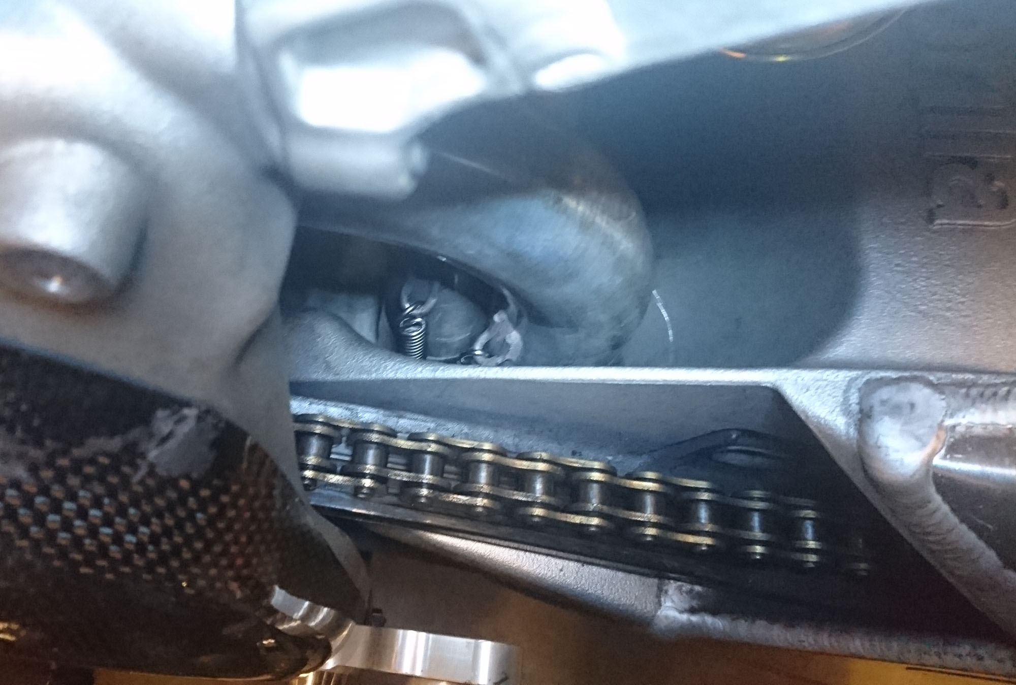 En undersøgelse viser at vi har tabt alle fire fjedre der holder manifold-røren fra de bagerste