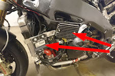 højre side af motorcyklen, lige indenfor kåberne. Et meget udsat sted ved styrt synes jag.