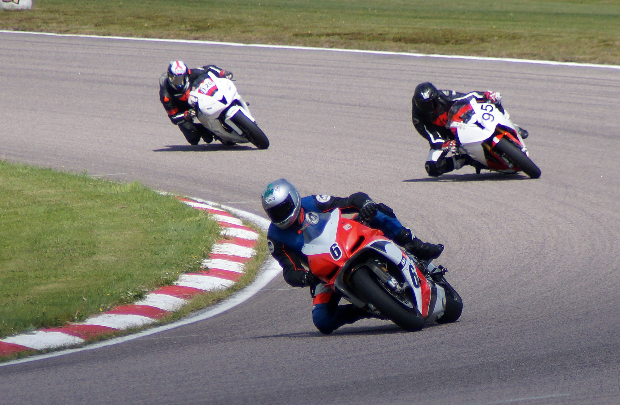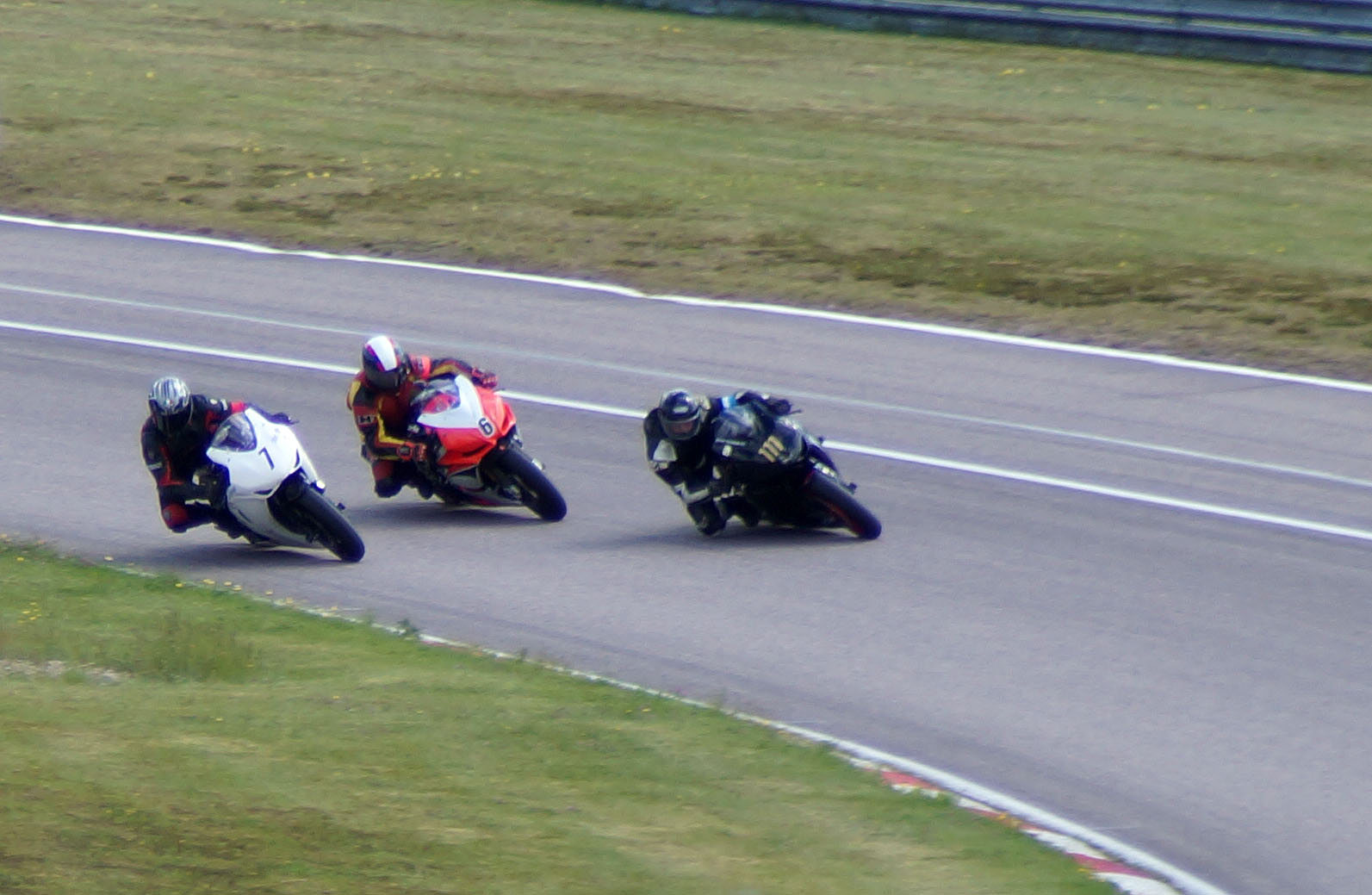 gennem det første sving og ud på langsiden hvor der blev mere plads mellem motorcyklerne.