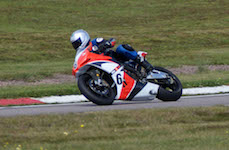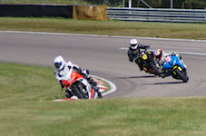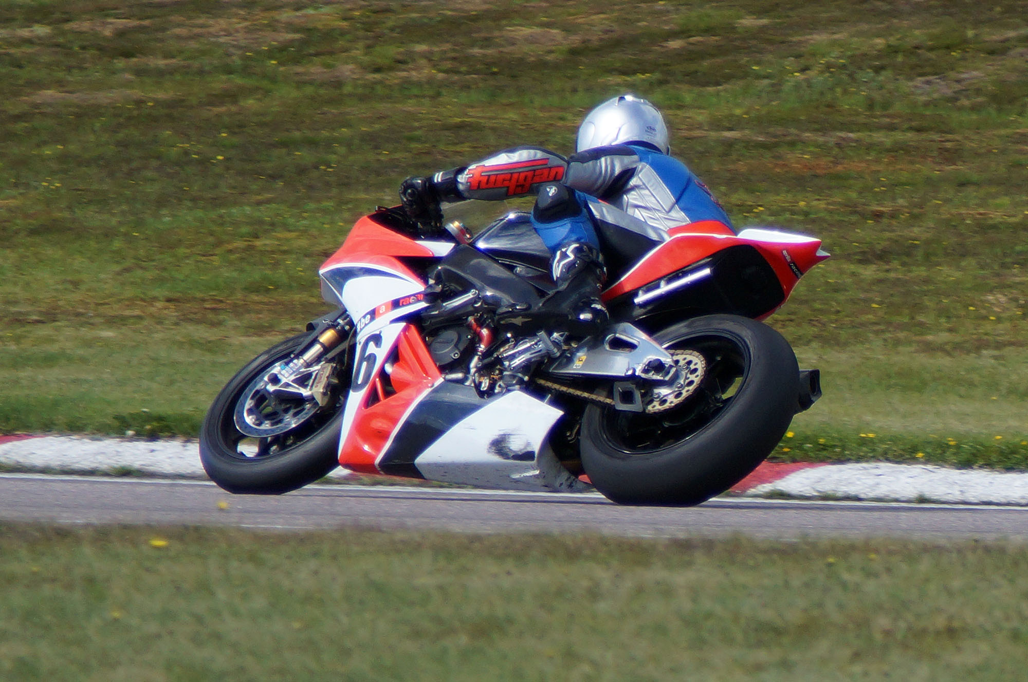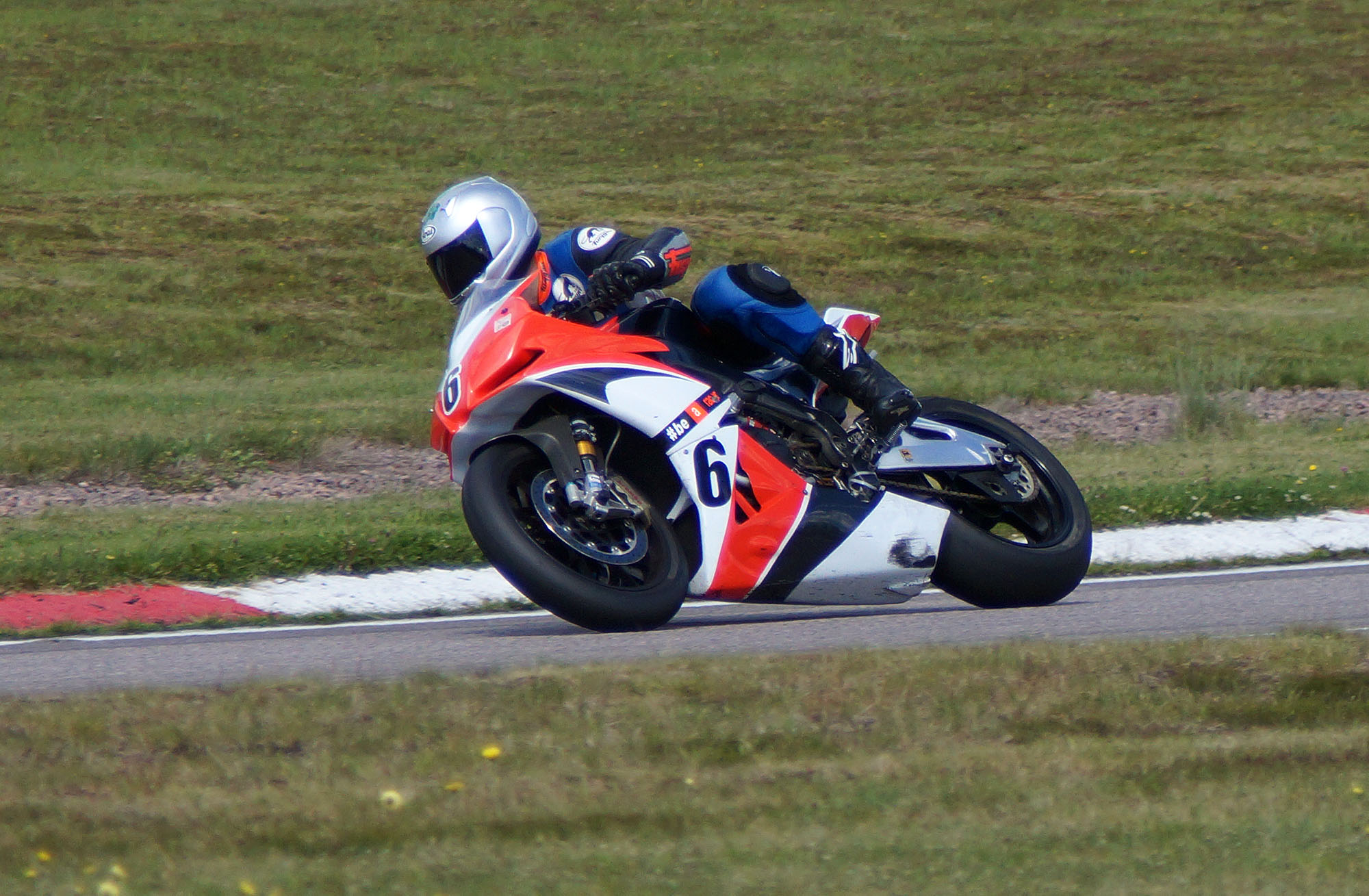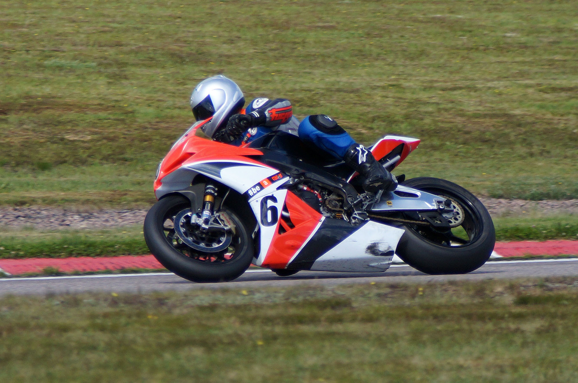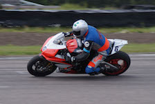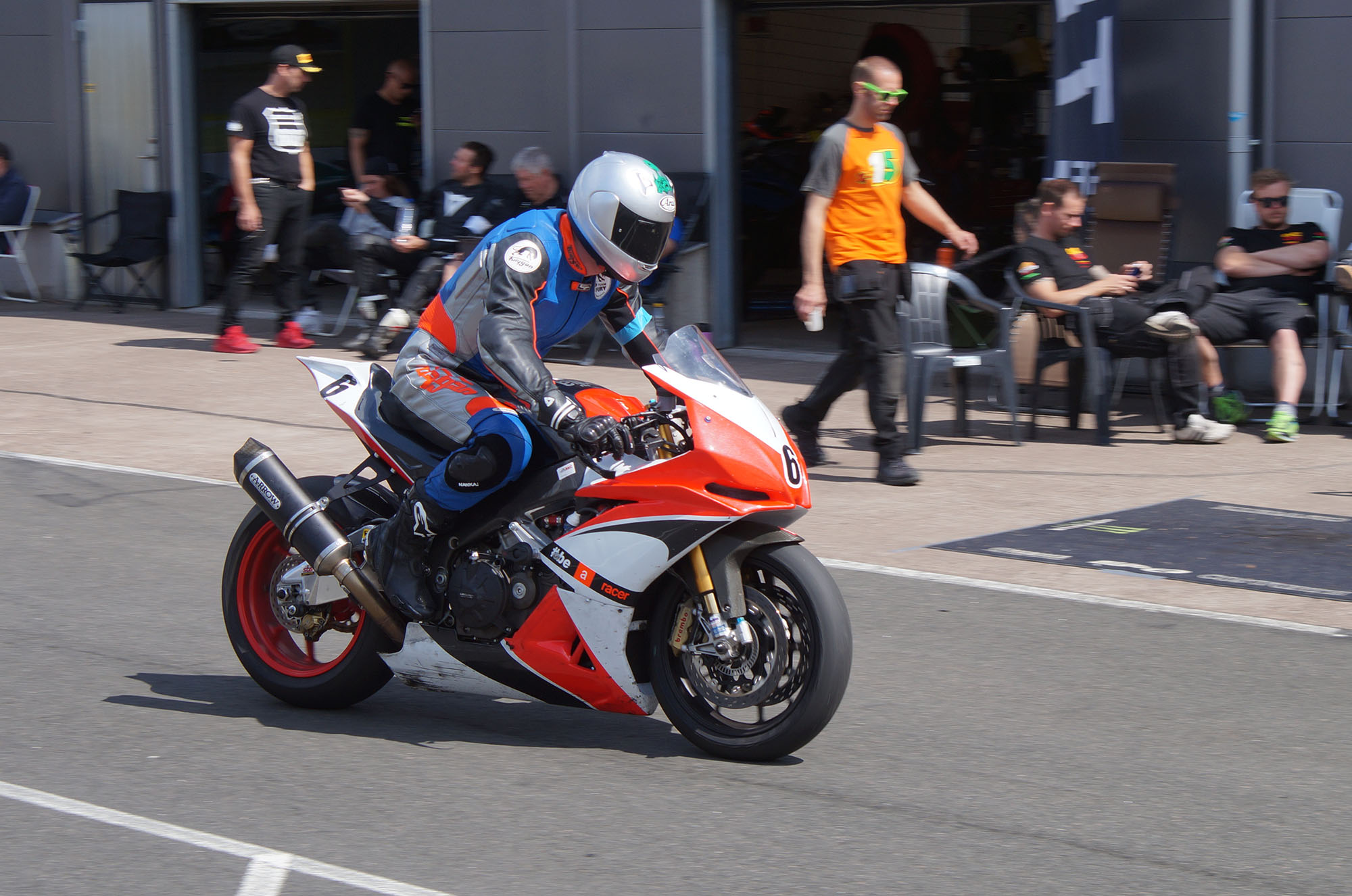 kommer ind i pit. Vi tanker motorcyklen, skifter kører, og sender Björn ud på banen.
