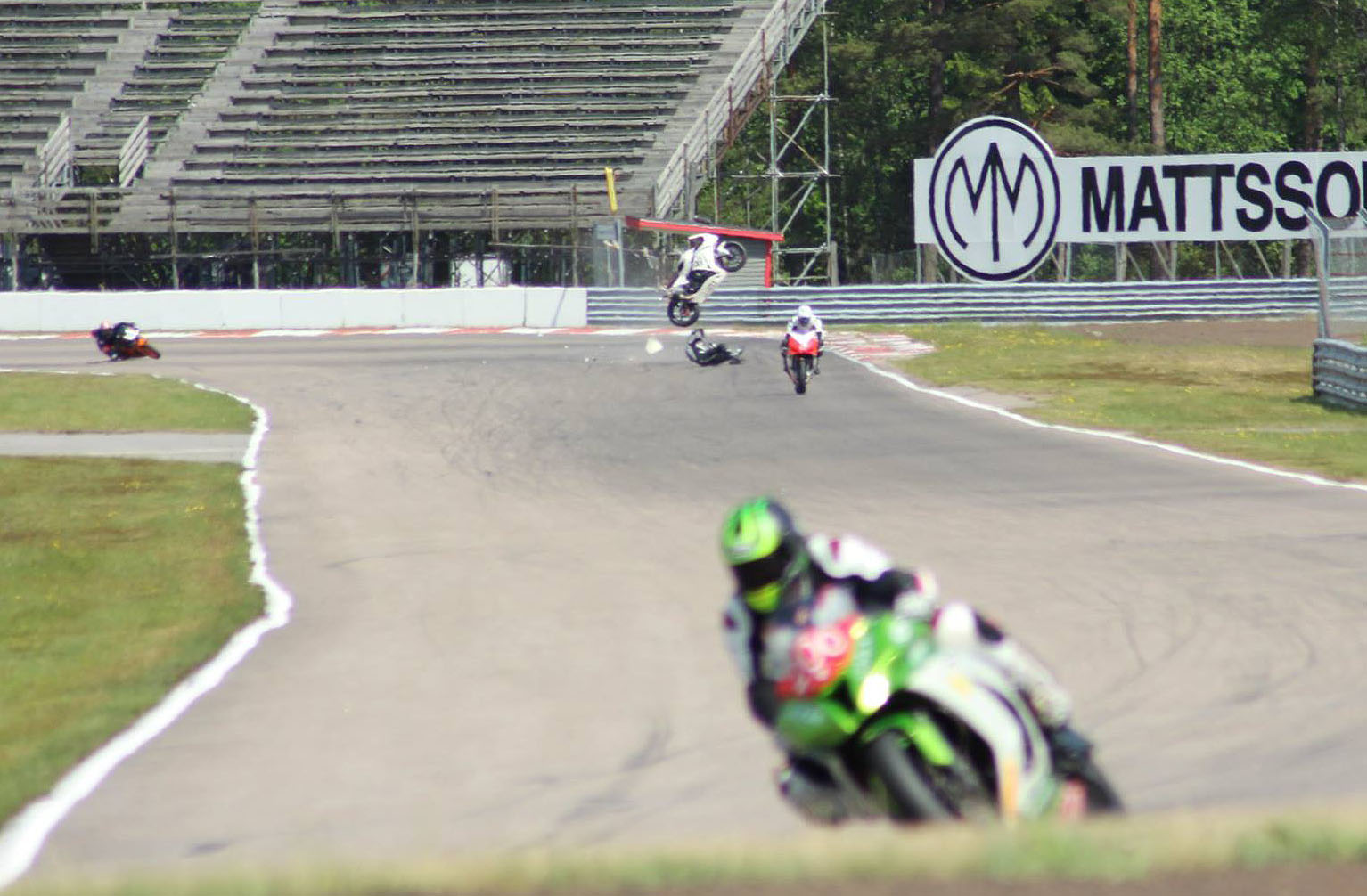 lidt for tæt på. Mikael bliver samlet op af banens personale og motorcyklen bliver transporteret tilbage