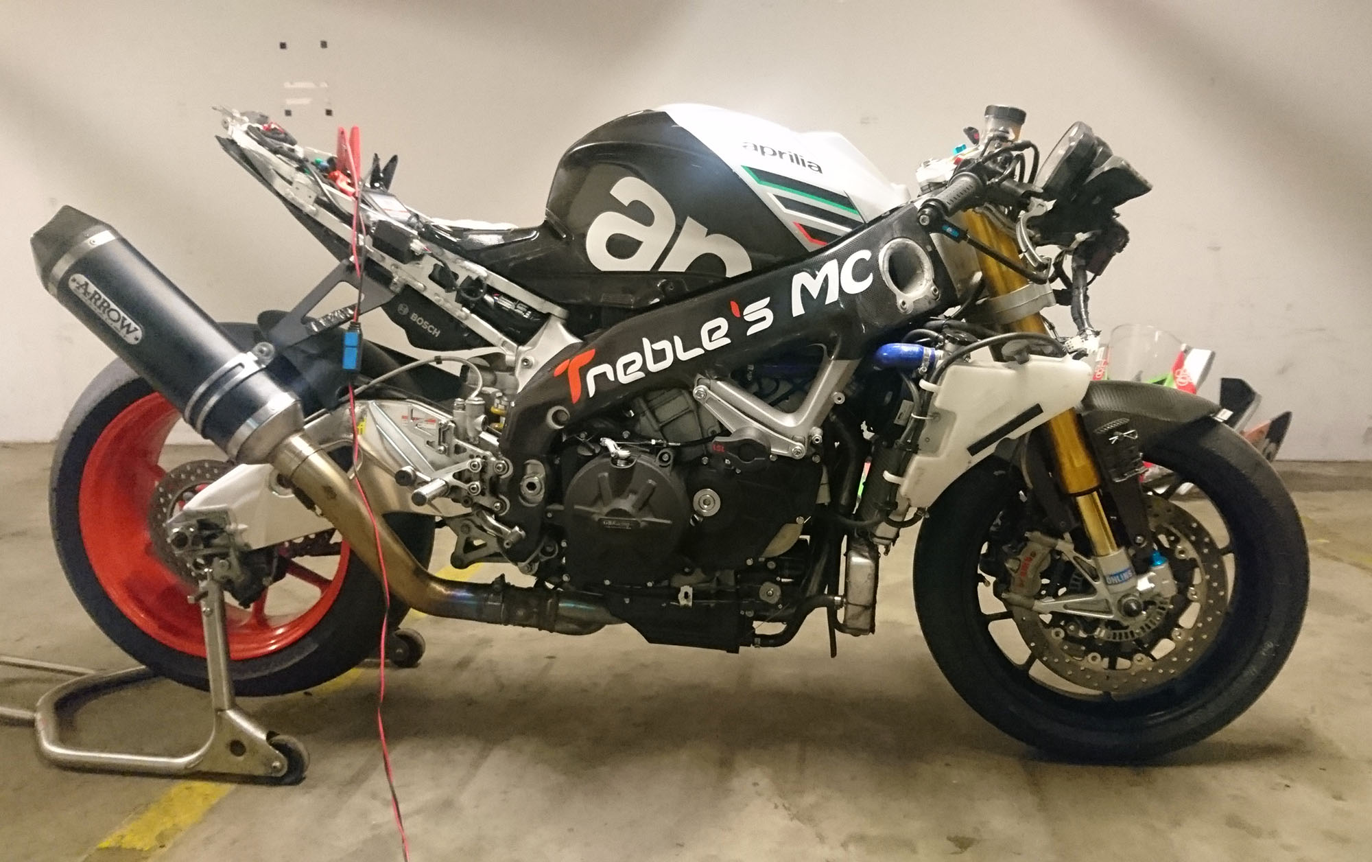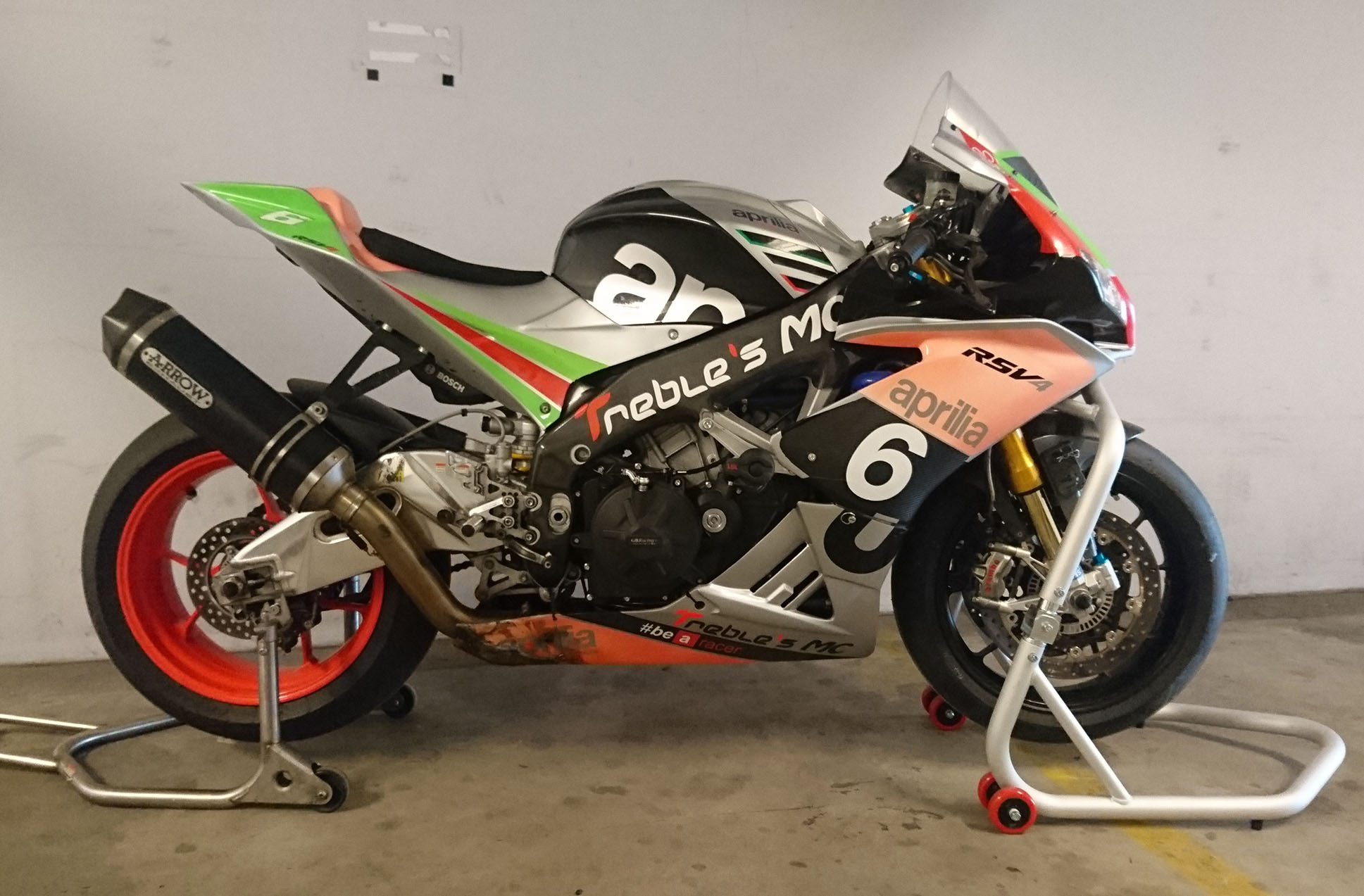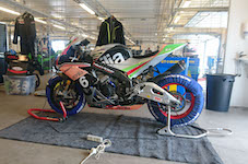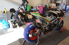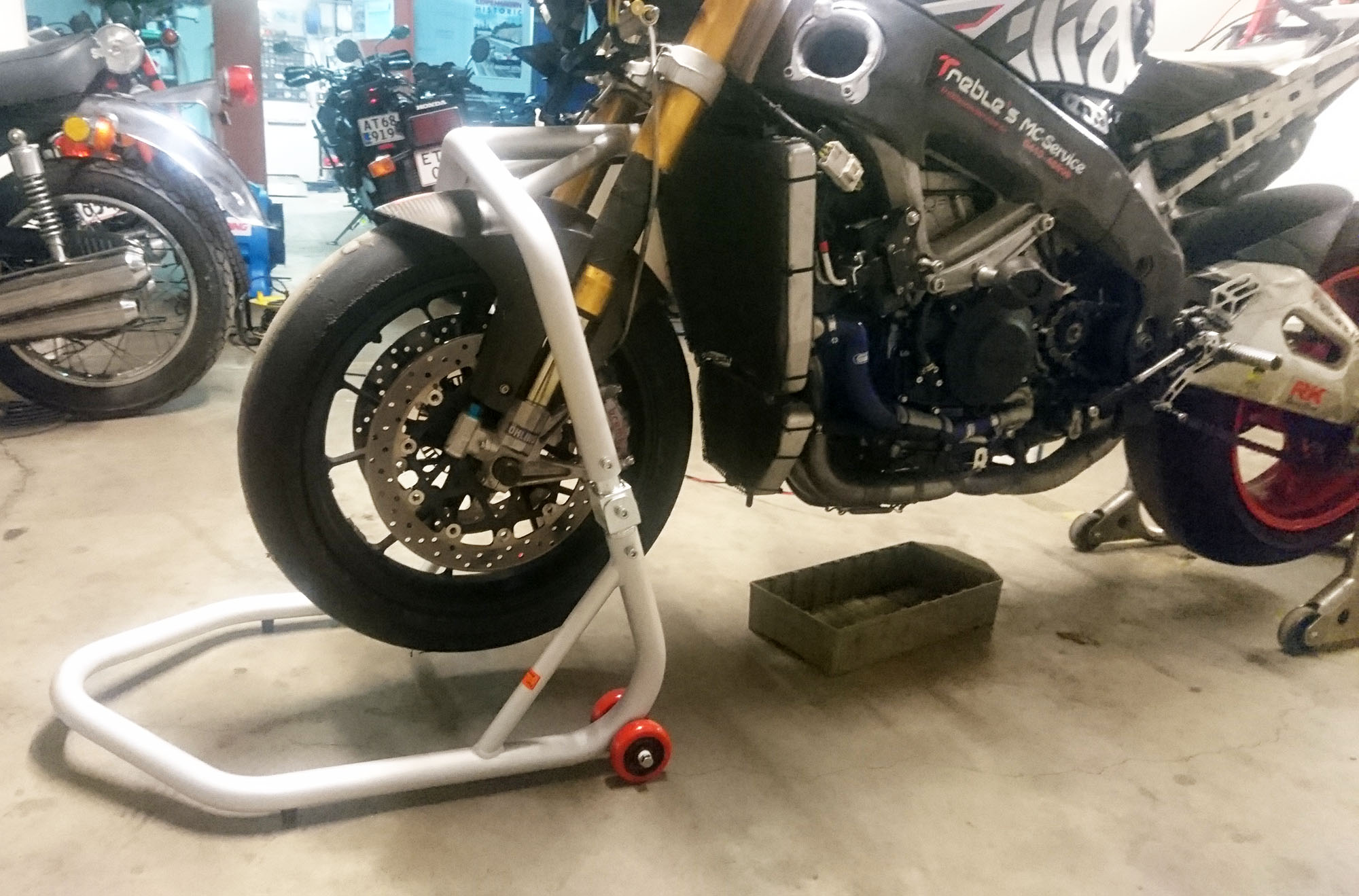i garaget og monterede nye regndæk på fælge, plus slicksdæk, et fordæk og to bagdæk på fælge