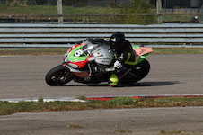 lige præcis der og crasher ud med baghjulsudskridning og en highsider.