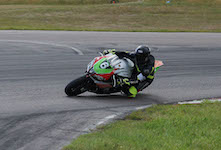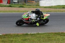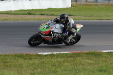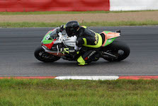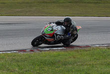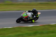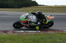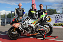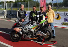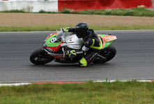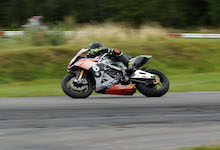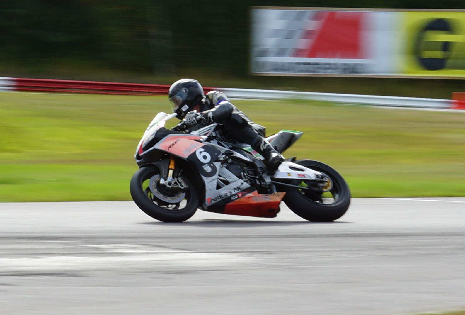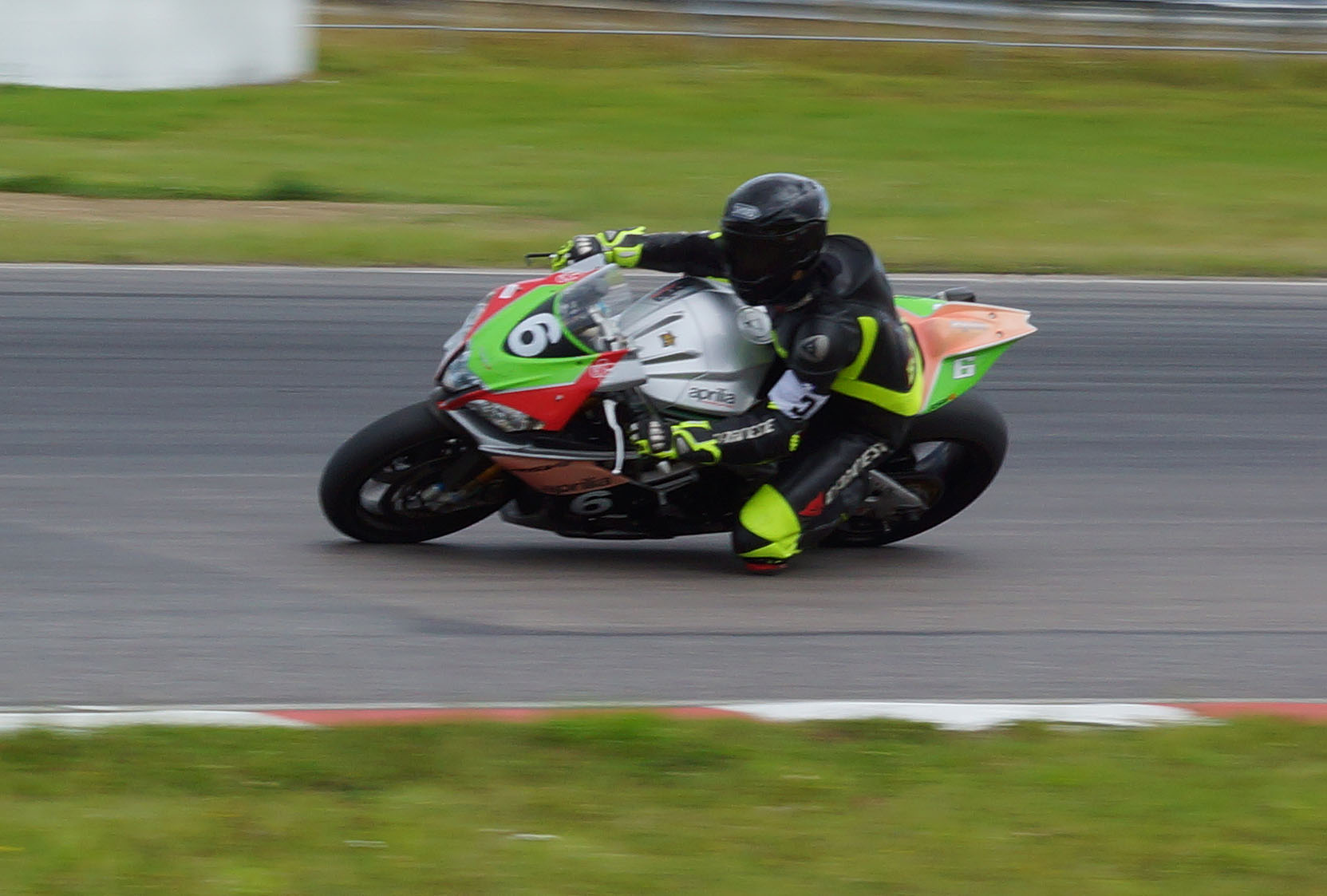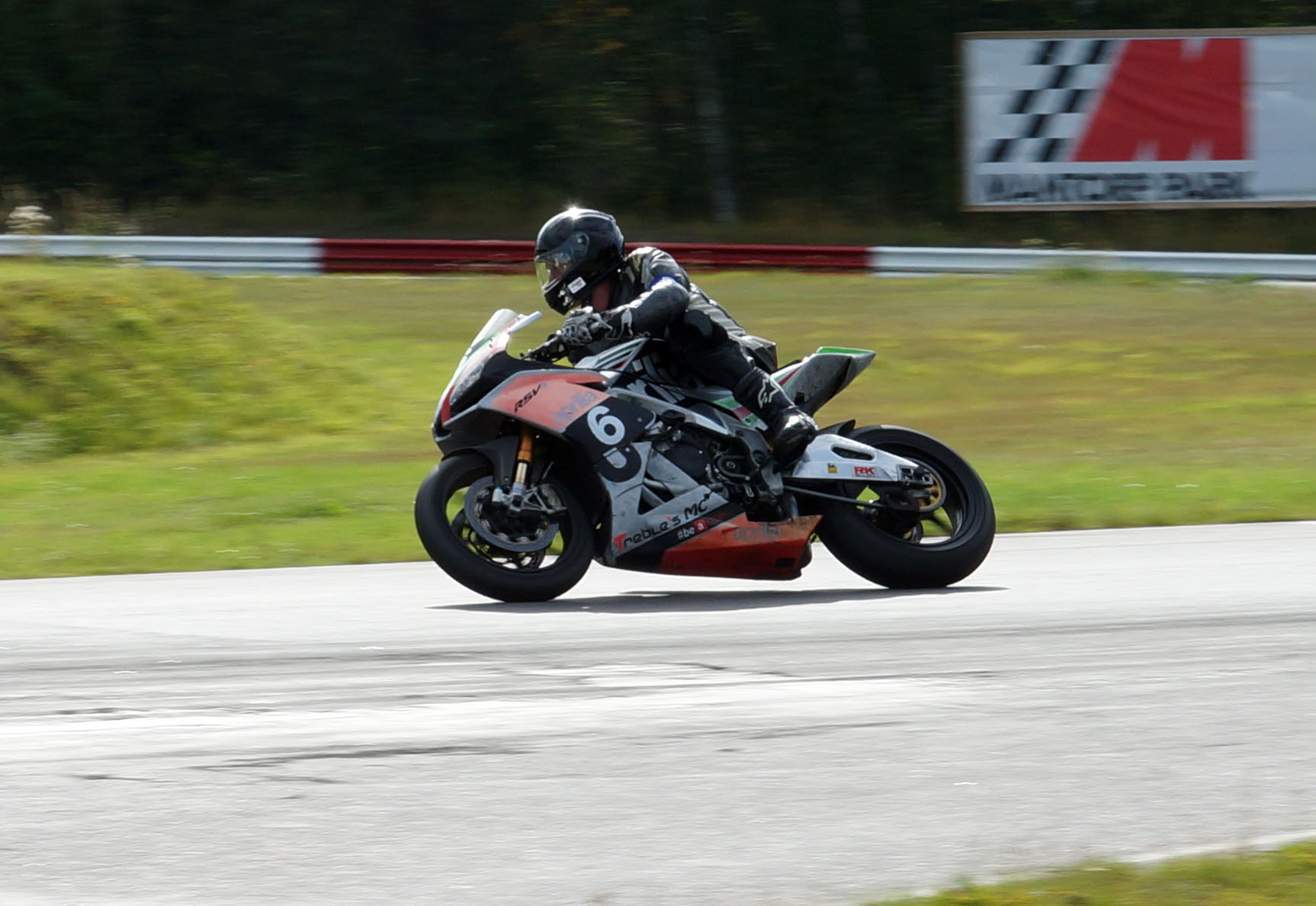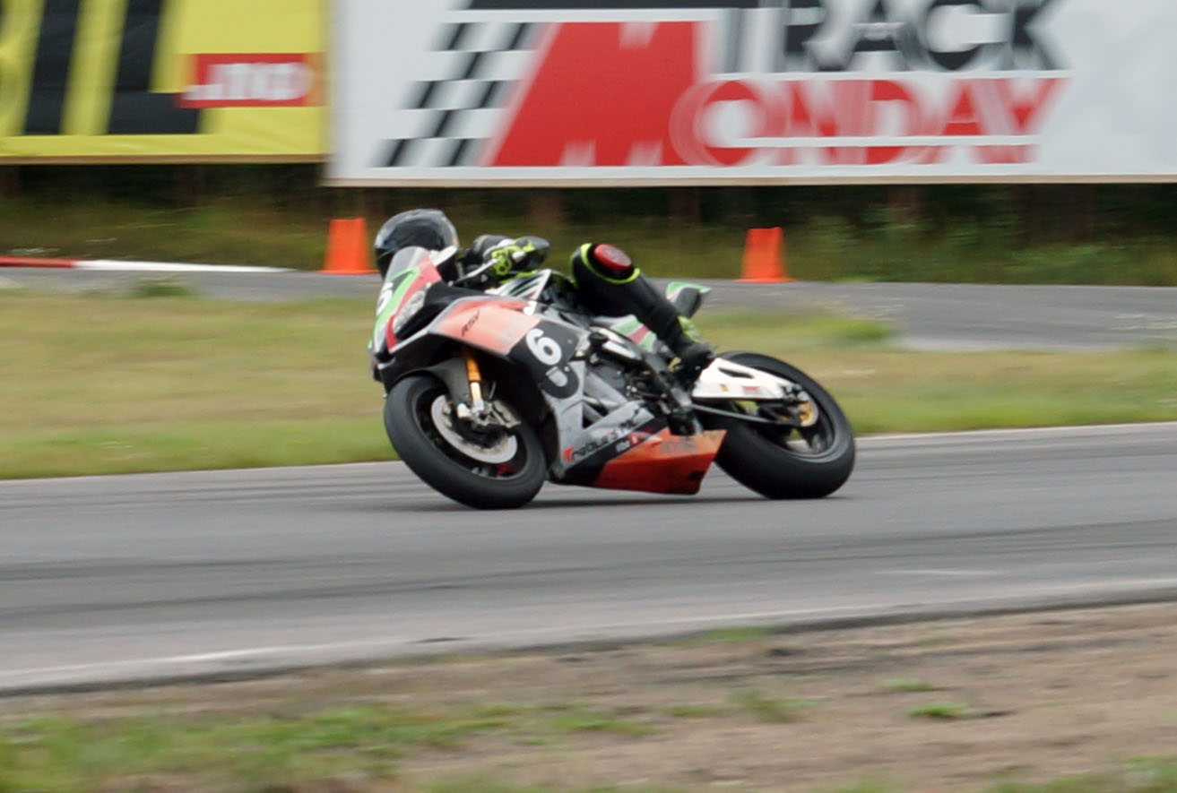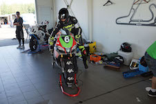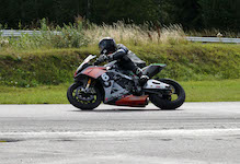 på en 1000-kubik motorcykel. Stefan "Humlan" fra vinderteamet som vi deler pitbox med, kommer