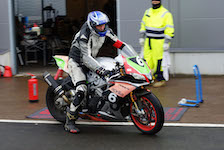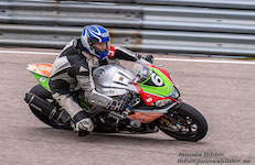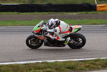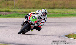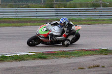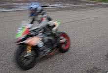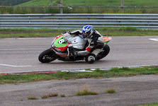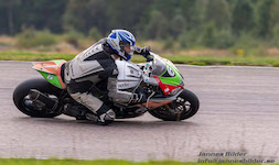 Peter er ude på banen med vores motorcykel.