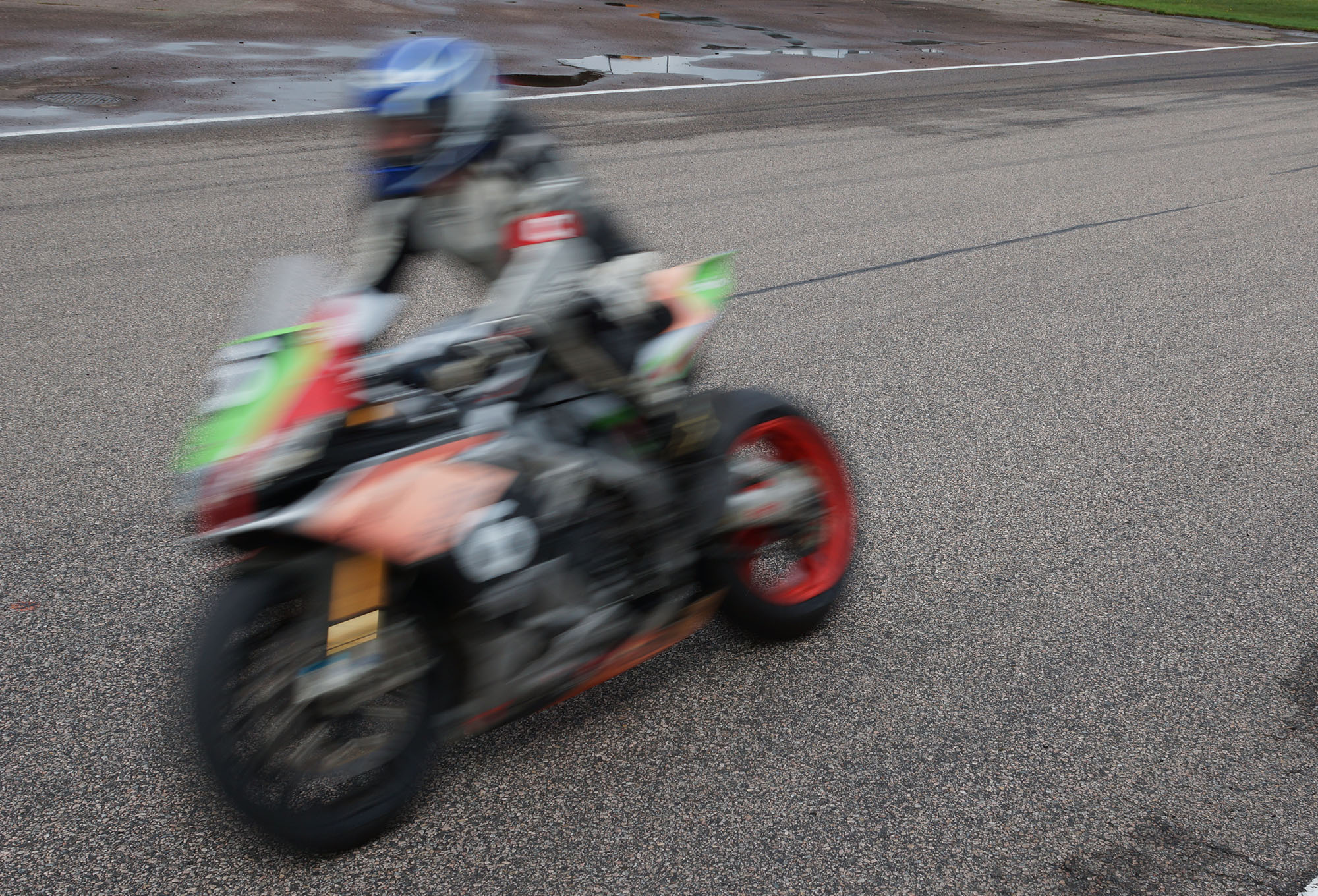 Han får en nyt hjul bag med et friskt slicks-dæk og så kan han give den gas derude.