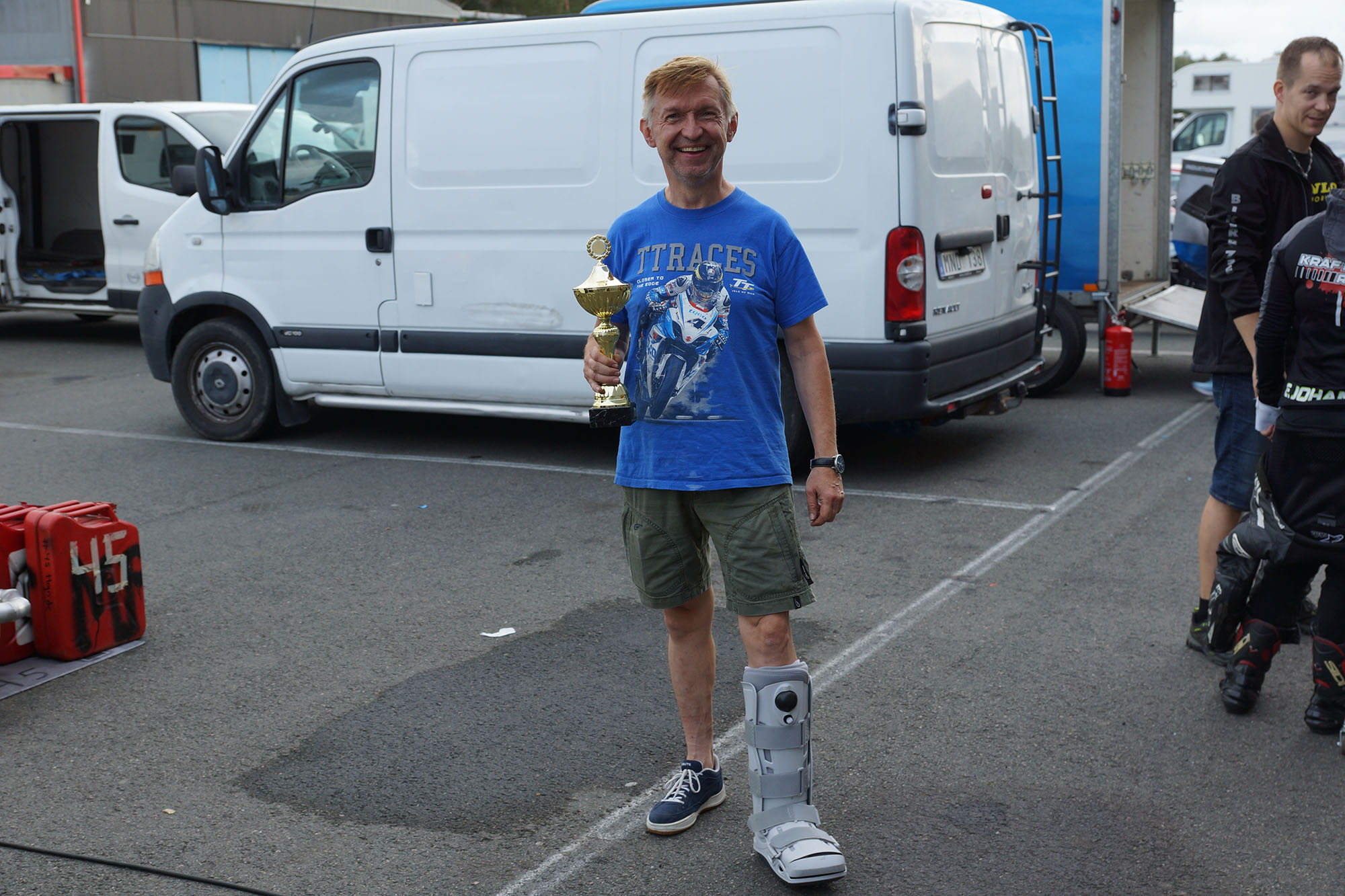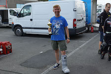 der kom fra København for at køre årets sidste løb i team #6 "Gammel Dansk Racing Team" med en brækked fod...