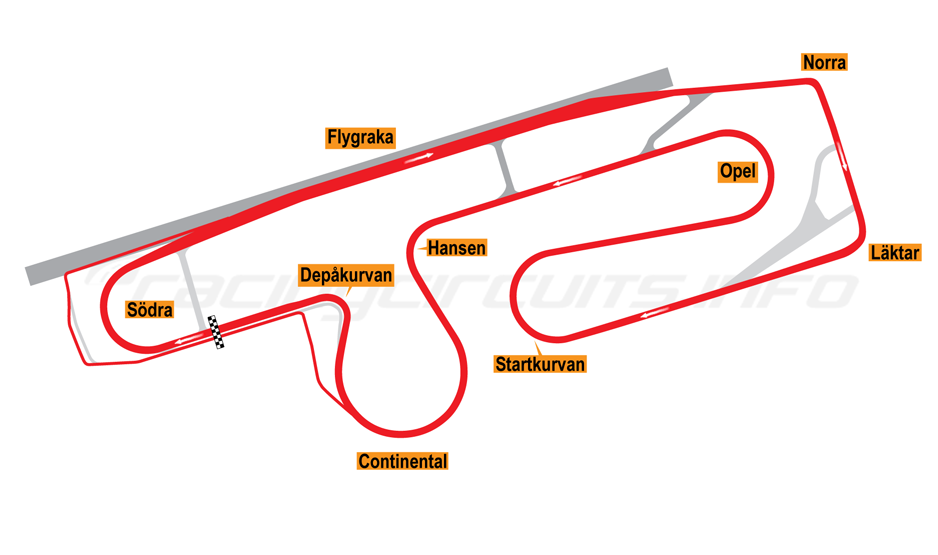 Depå-svinget og i slutningen på den lange Flygrakan i Norra svingen.