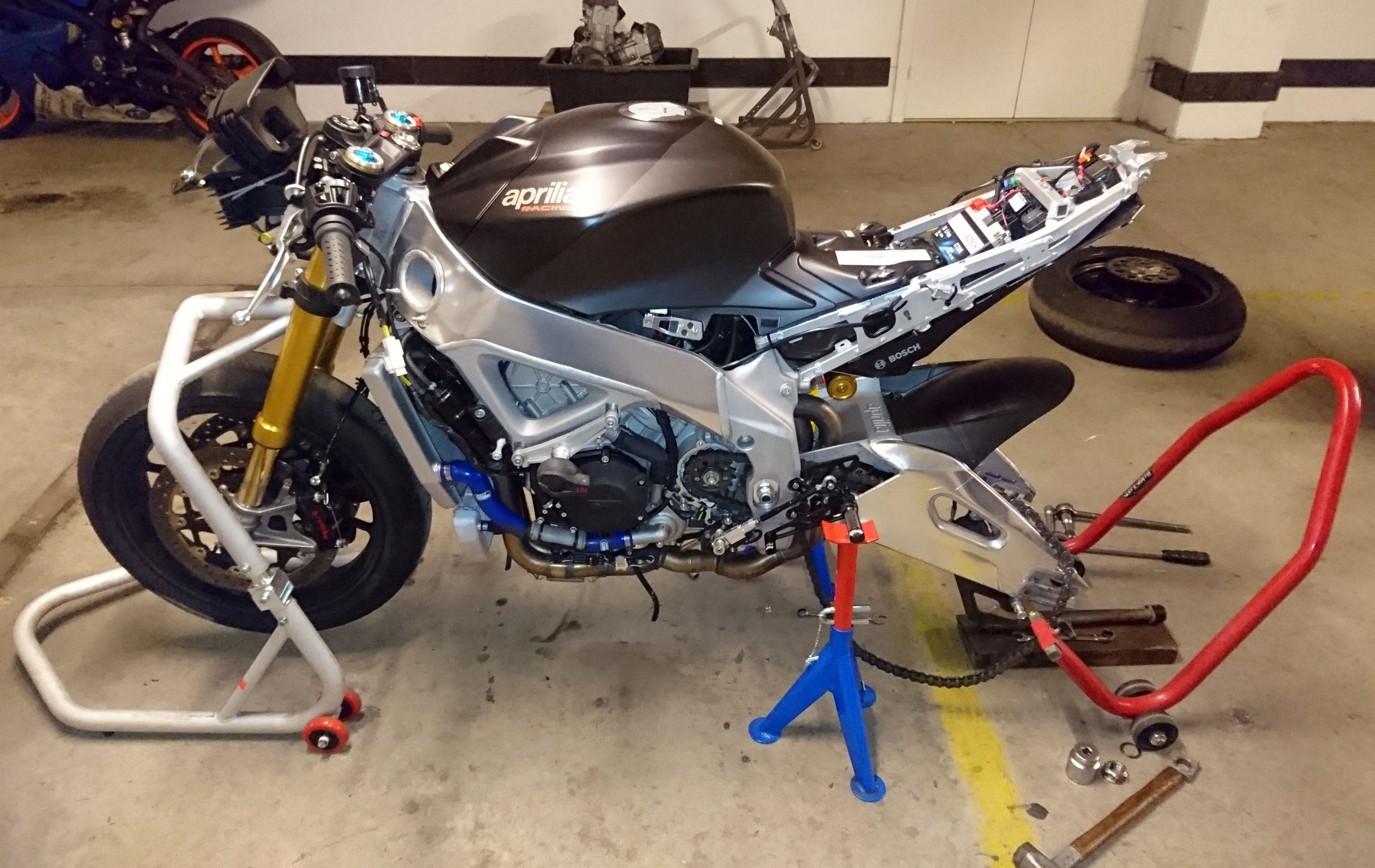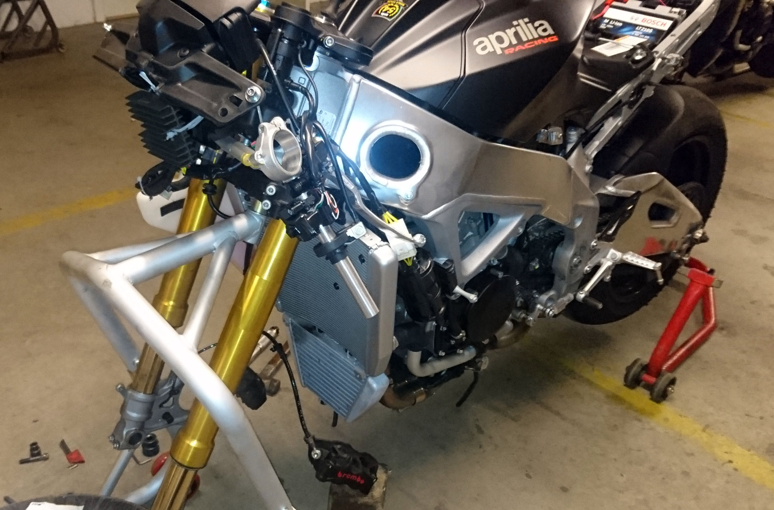 Jeg fik pludslig travlt med at bygge om den nye Aprilia RSV4 1100cc Factory til løb.