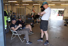 tankning. Björn holder brandslukkeren og Erik gører sig klart til at køre ud på den sidste