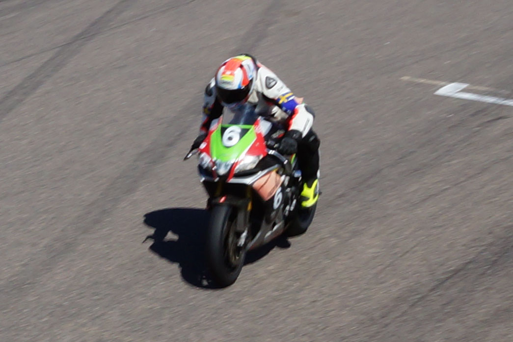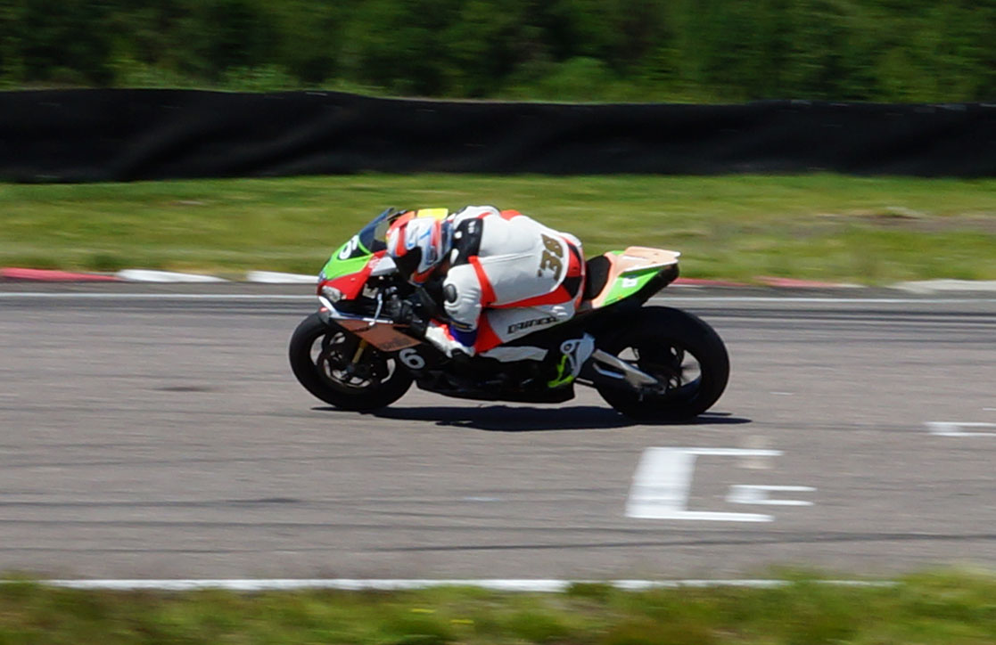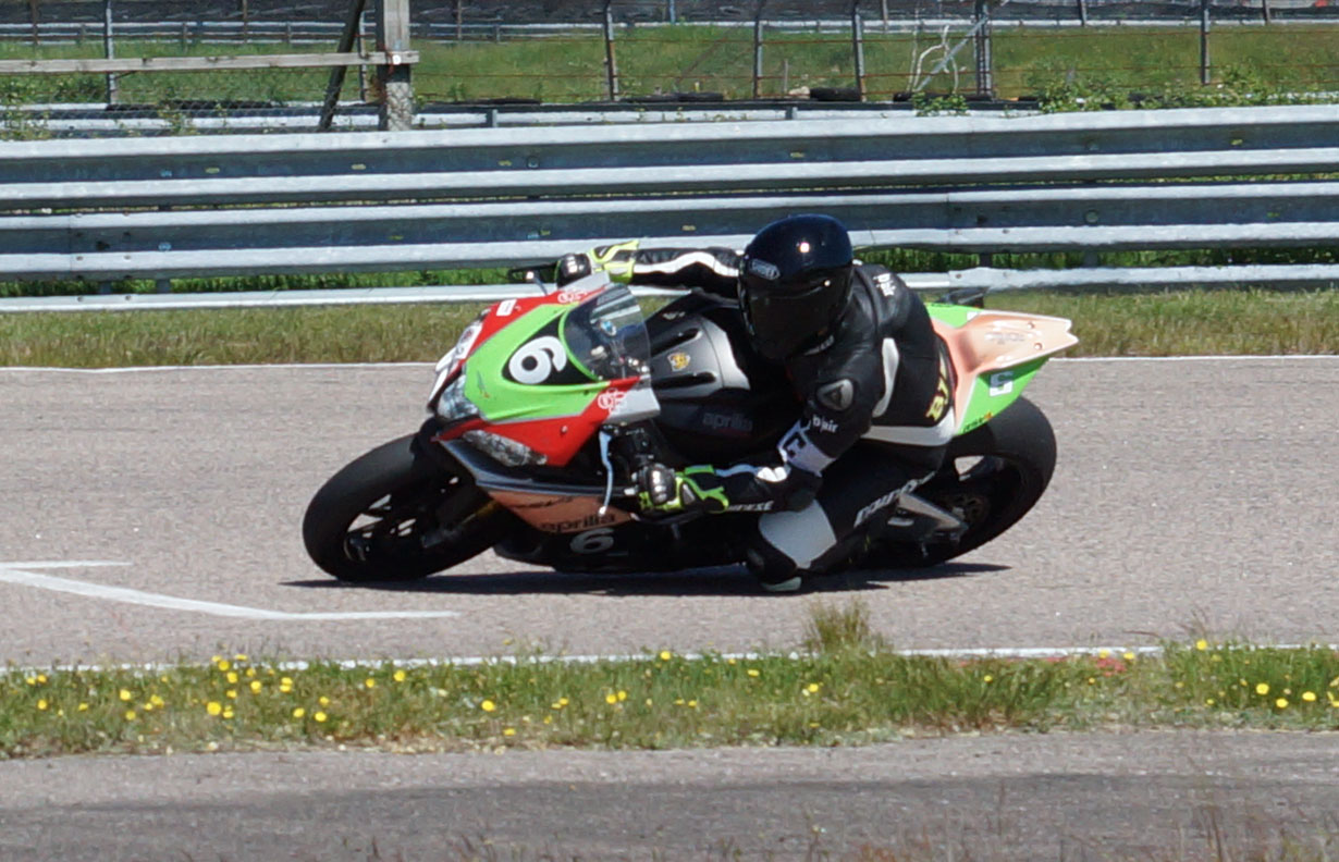 Man kan se at Erik nyder dagen. Han kører hurtigt og alligevel stabilt og uden risiko.