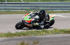 og køre hurtige omgange og at kæmpe med de andre på banen. Det ser ud som Björn hygger sig godt.
