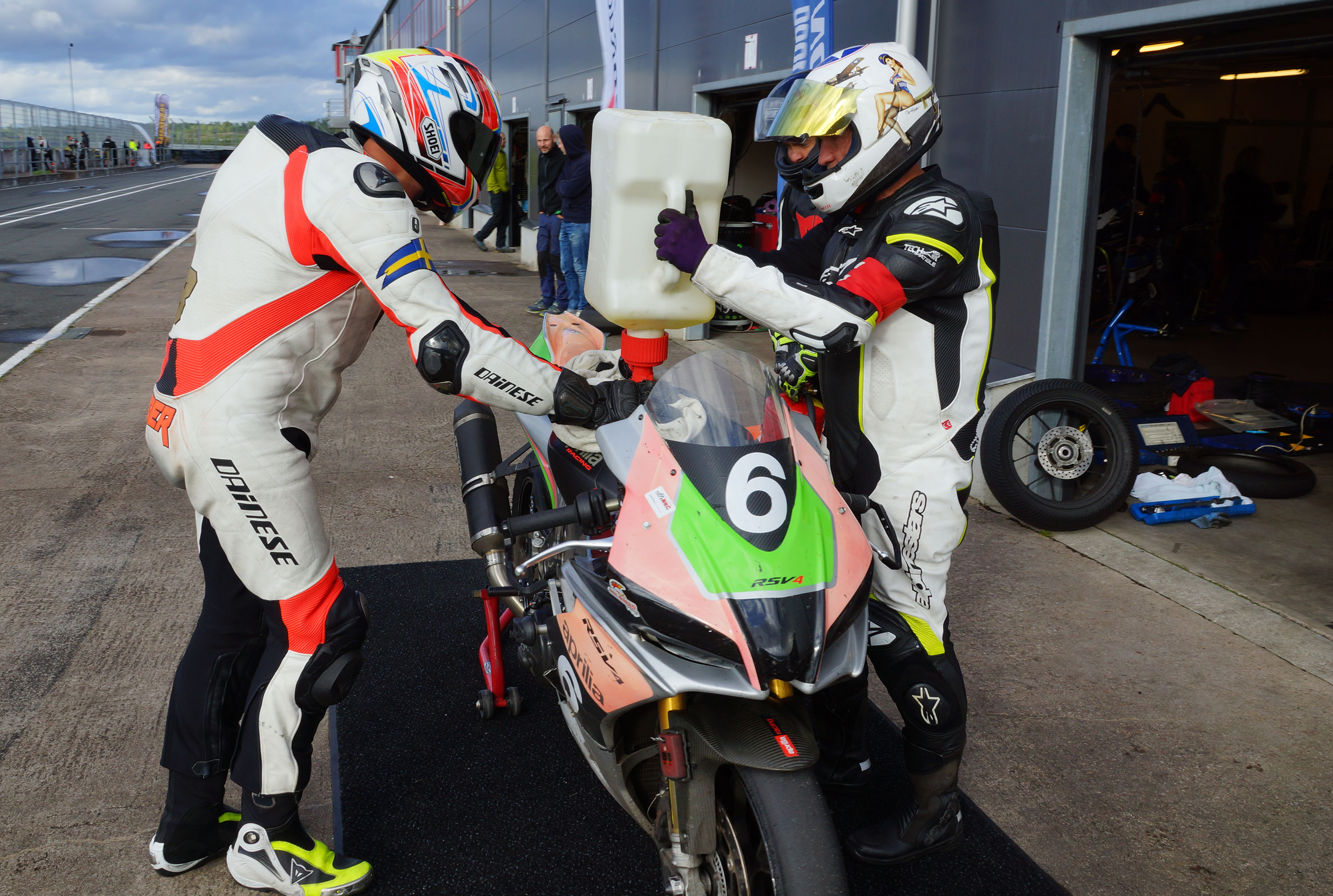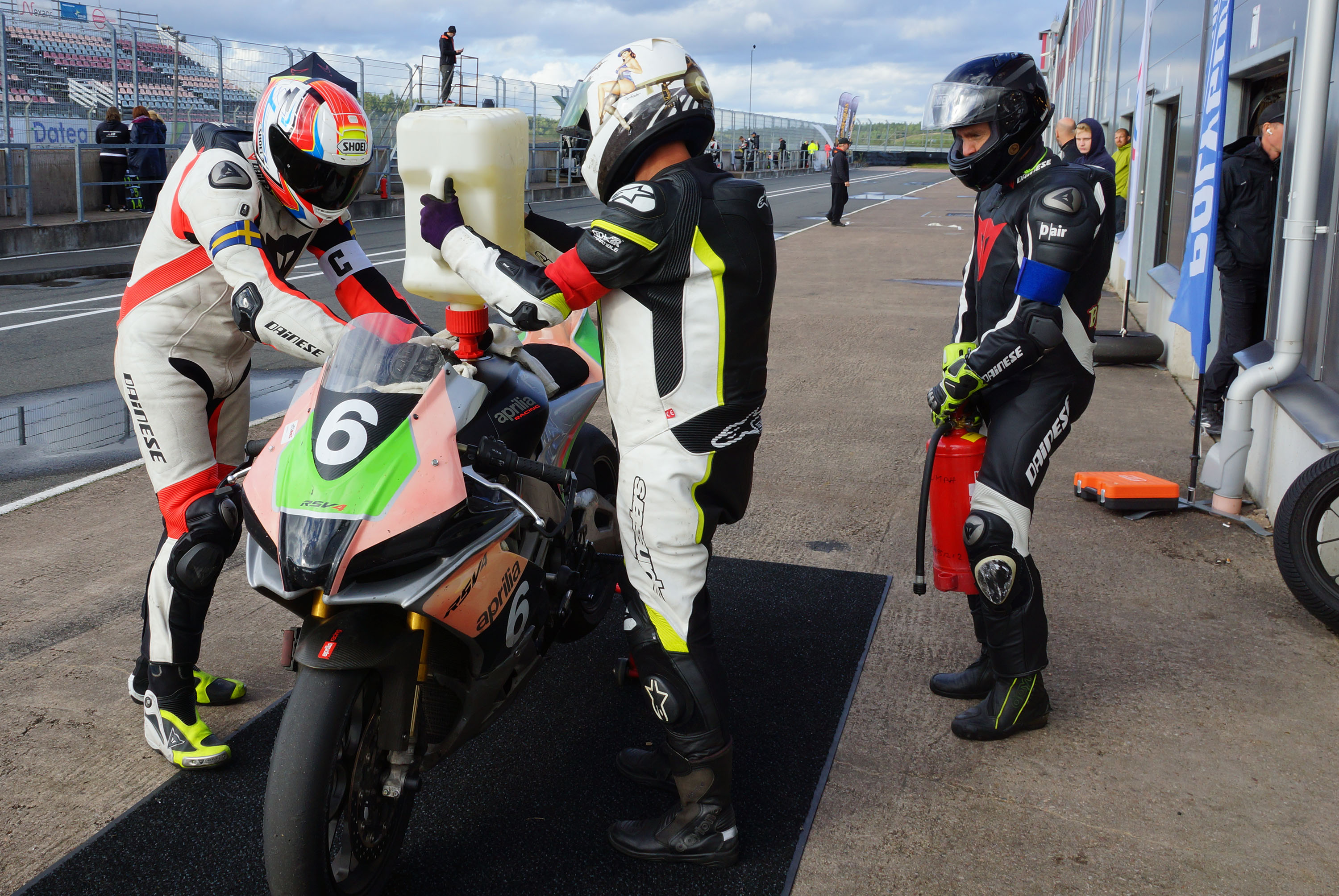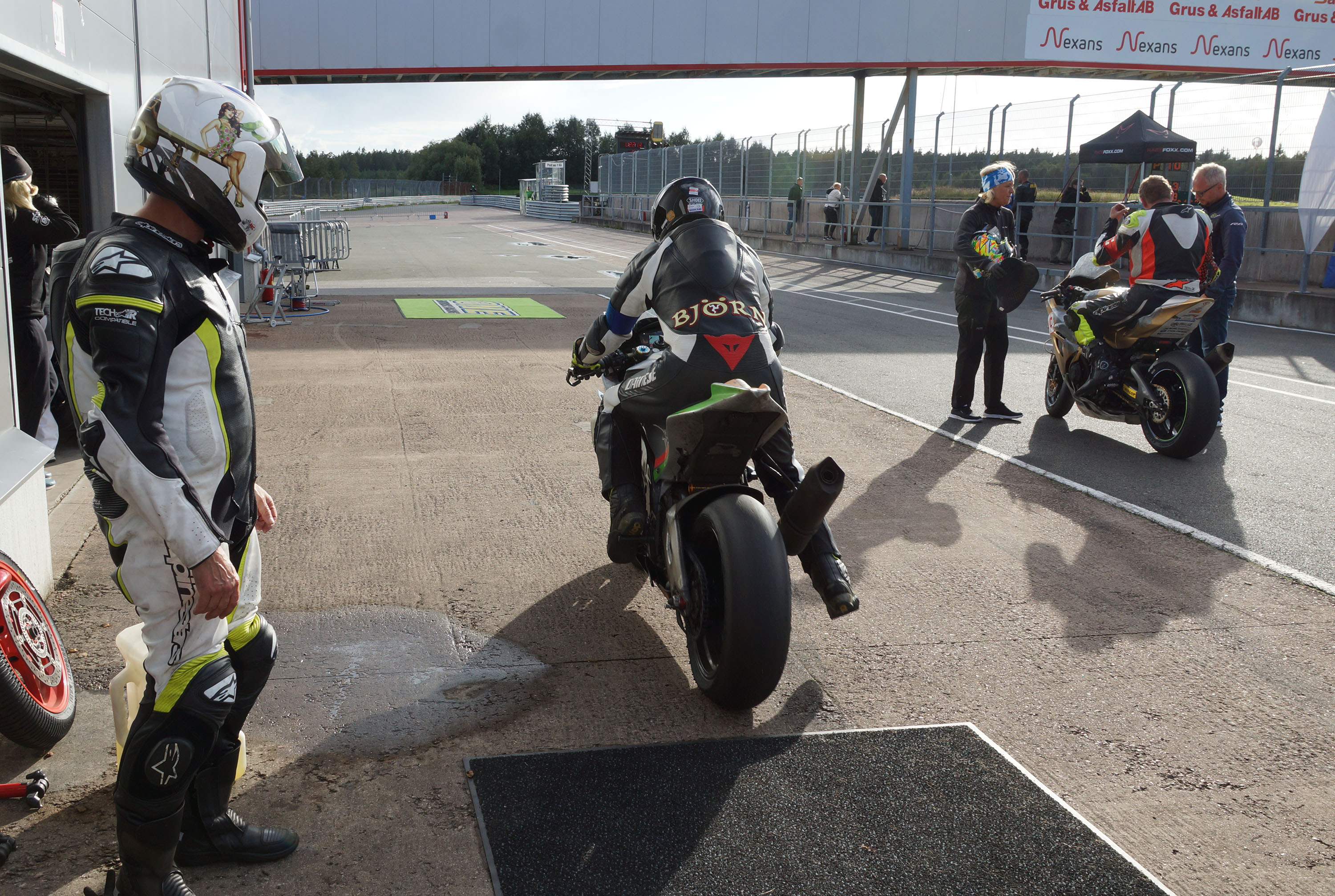 Vi fik os indskrevet og taget vores køredragter og vores motorcykel gennem teknisk kontrol så at alt var