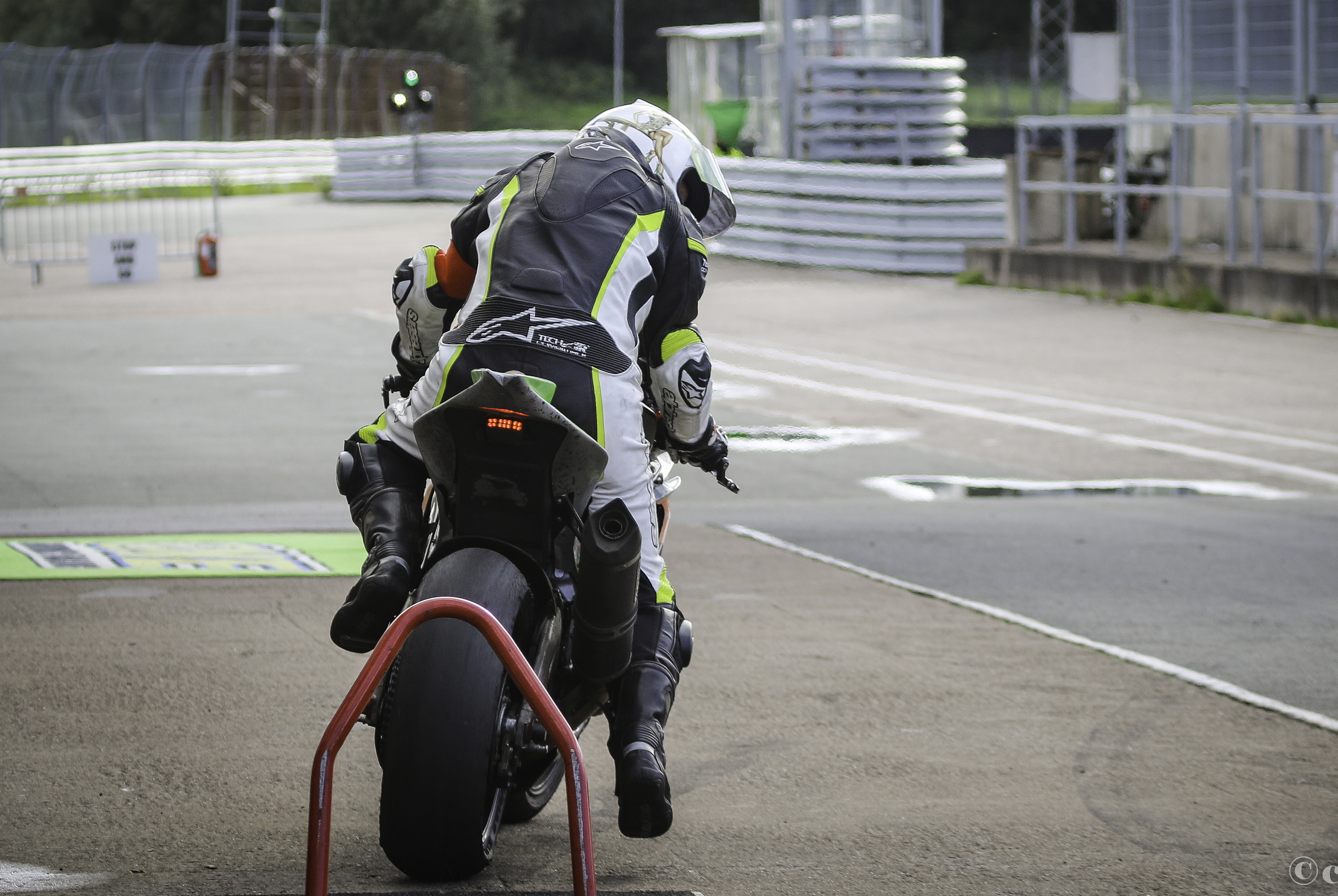 Desværre, allerede efter 3-4 omgange så begynder det at regne, så jeg styrer ind i pit