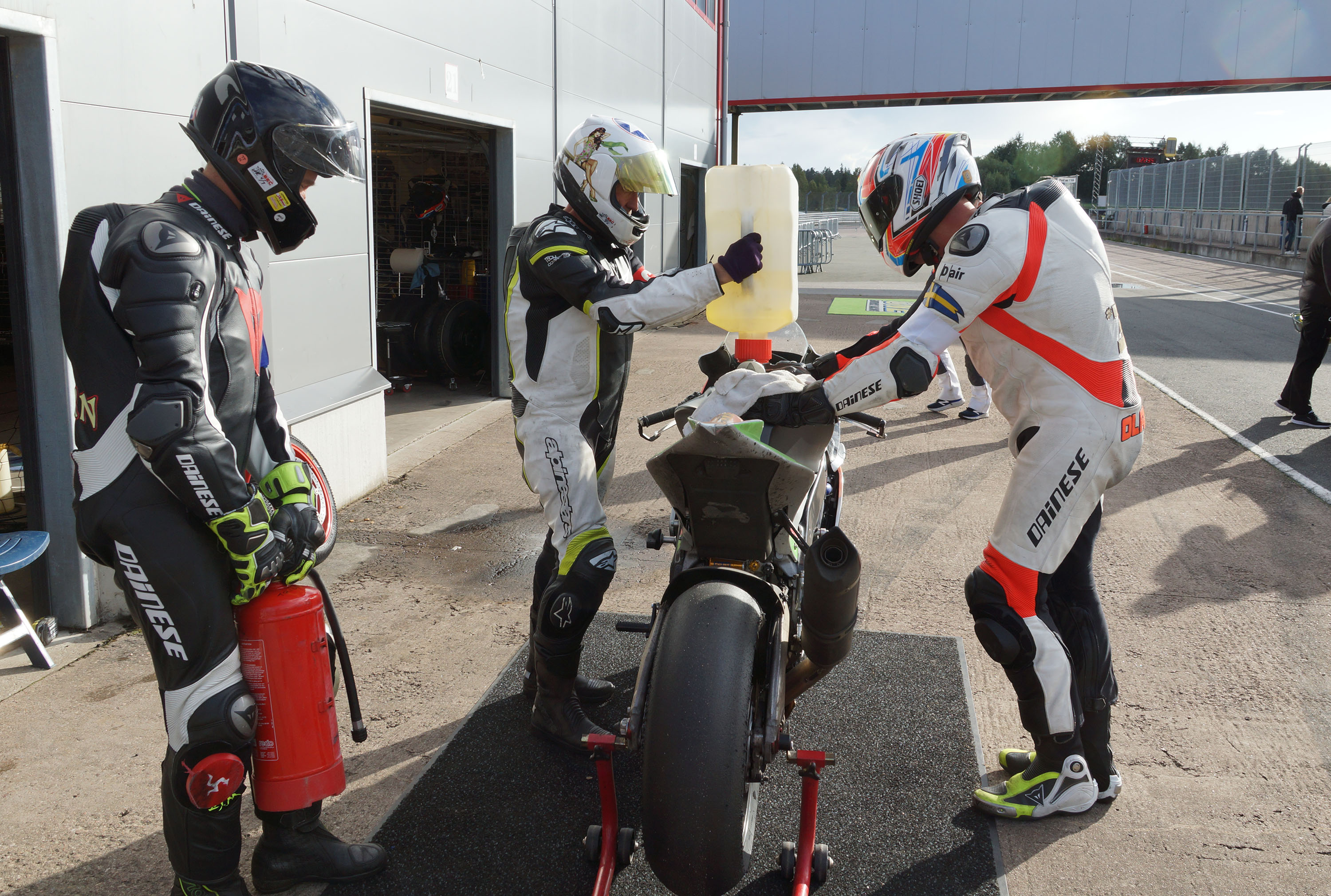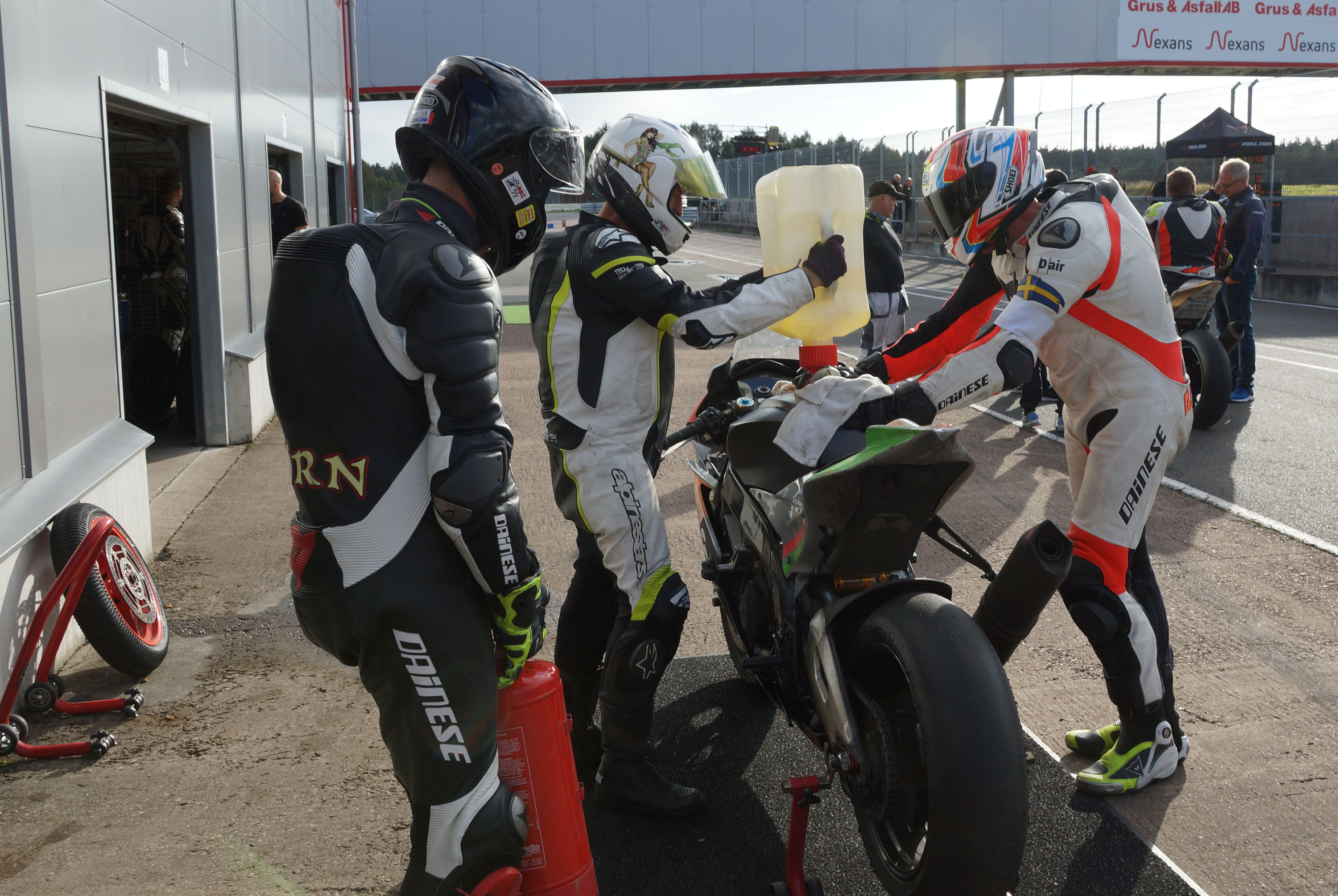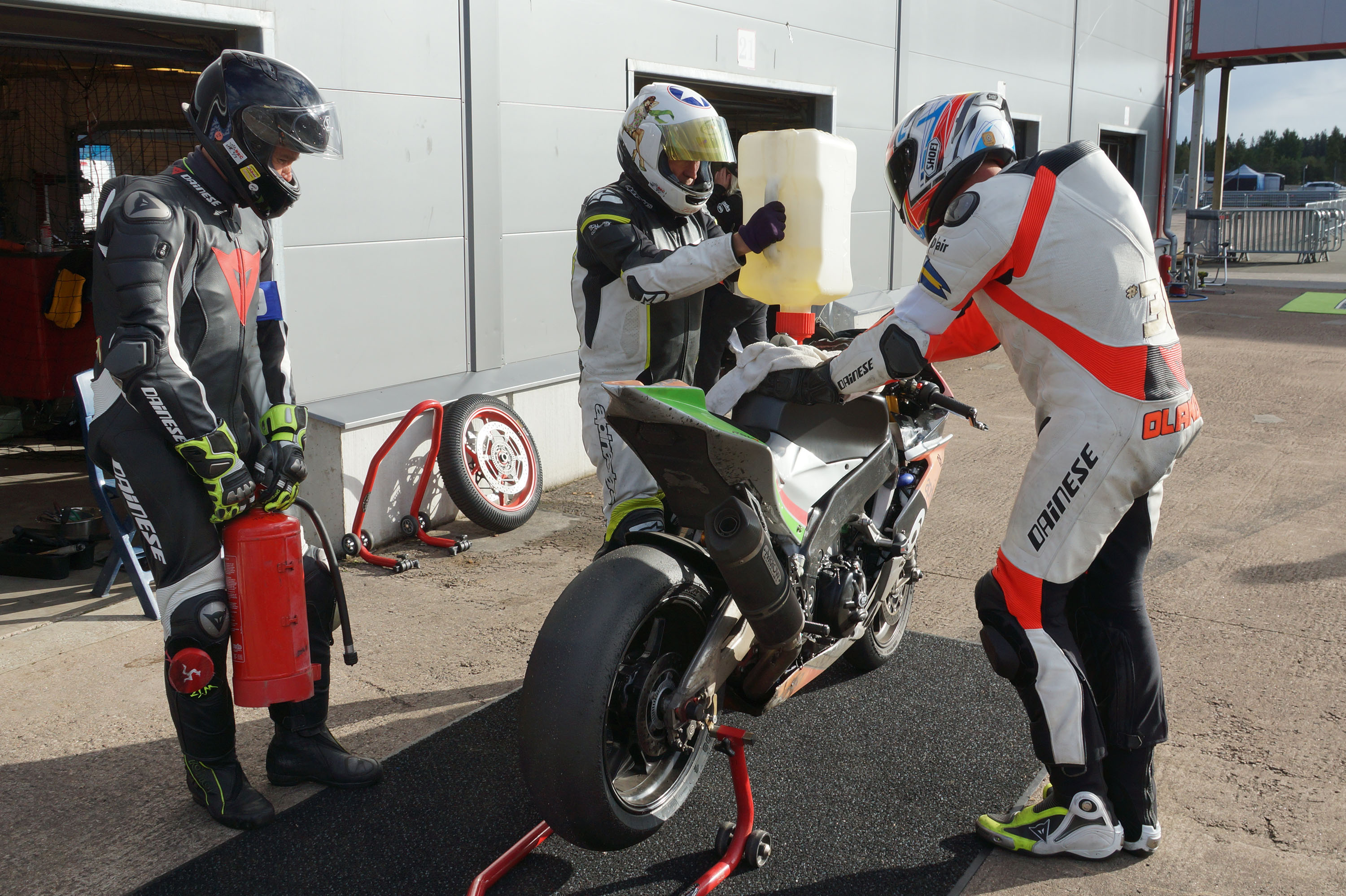 vi tanker motorcyklen op og chekker lige dækken.