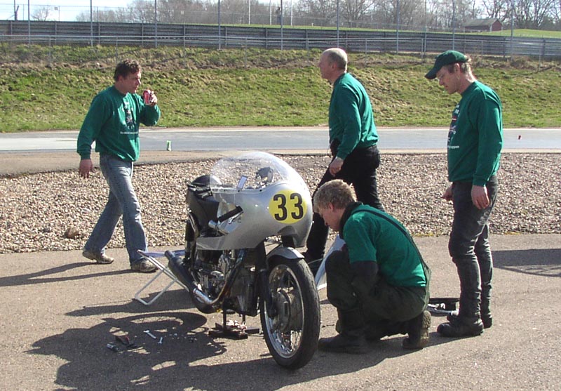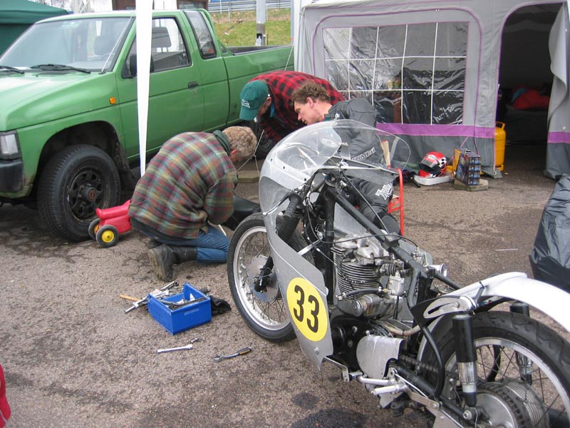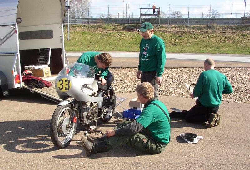fik et eftersyn, for den bremsede meget dårligt når den blev varm. Team Como mekanikerne