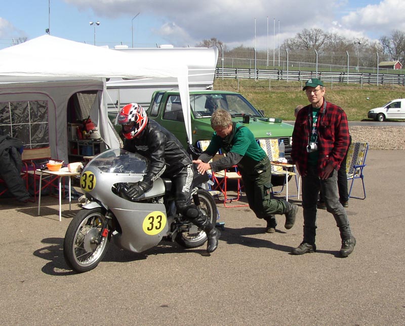 Nå, men vi, køreren Bo, mekanikerholdet Steen, Jens, Lars og Jan drog af sted til Knutstorp,