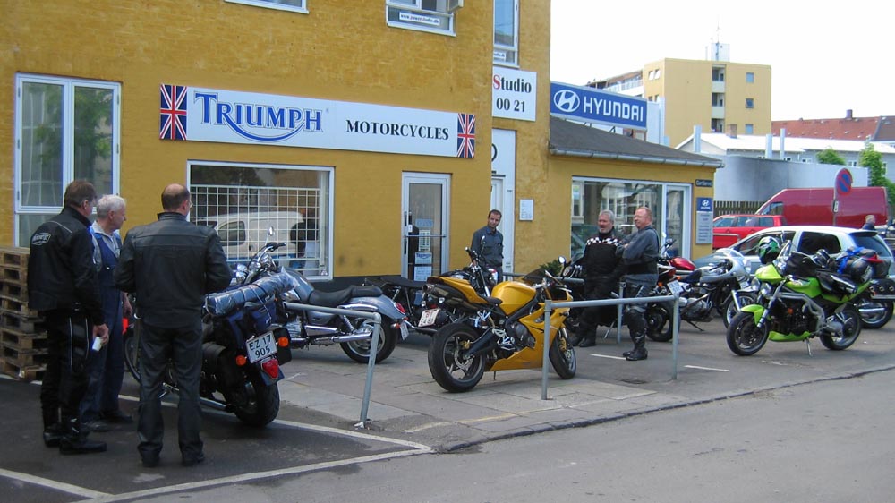 Fredag mødtes HJ, Karl, Preben, Ib, Ole, Jørgen og Jan hos Triumph Copenhagen for at