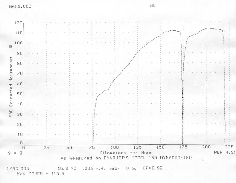 3) 113 hk på hjulet.