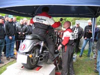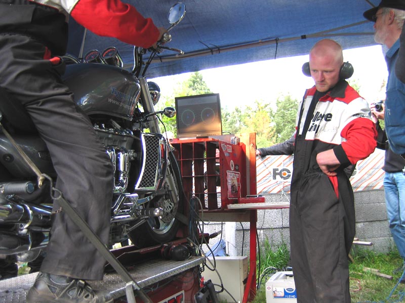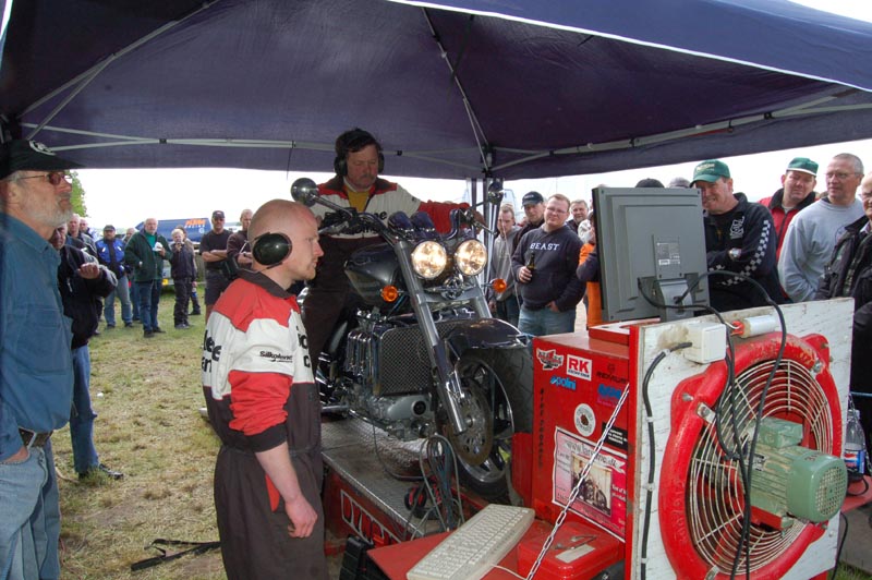 På pladsen står også en Dynojet testbænk. Det er Lars MC der kommer med den hvert år.