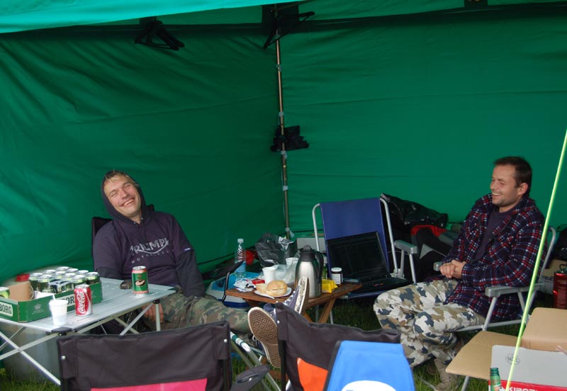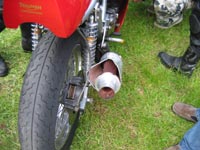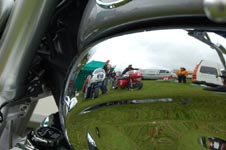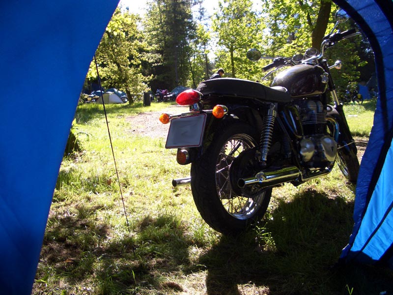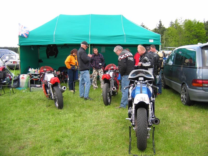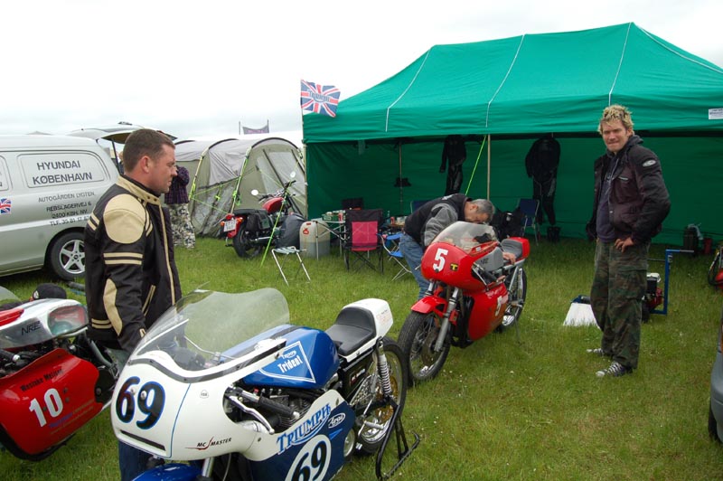 Triumph Copenhagen lejren bliver slået op. Lars og kone fra Sverige er kommet. Mekanikerne