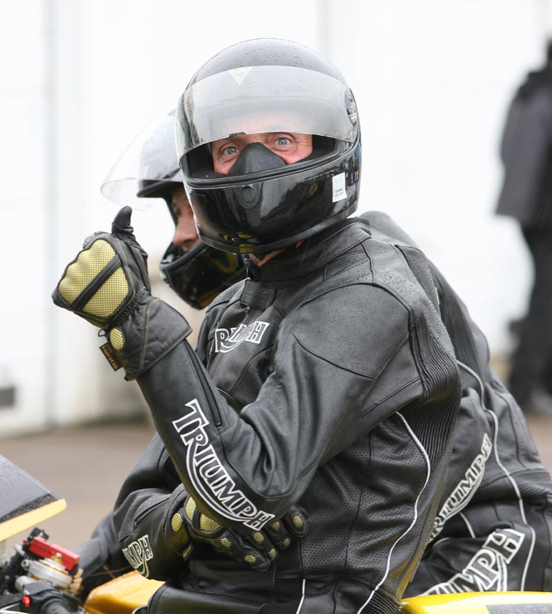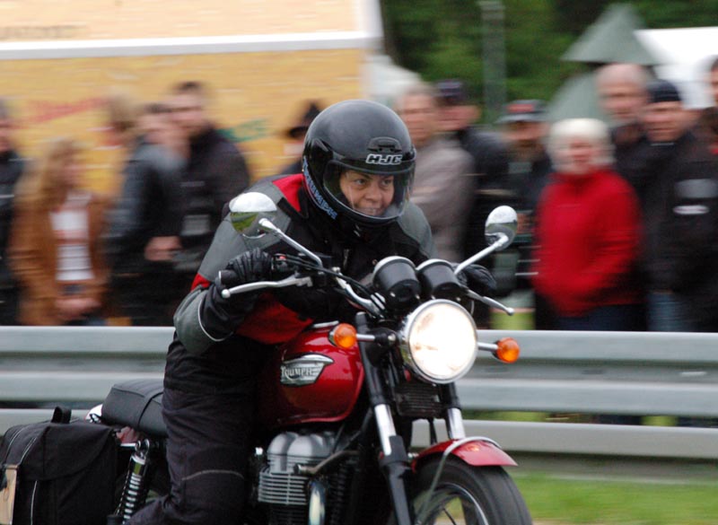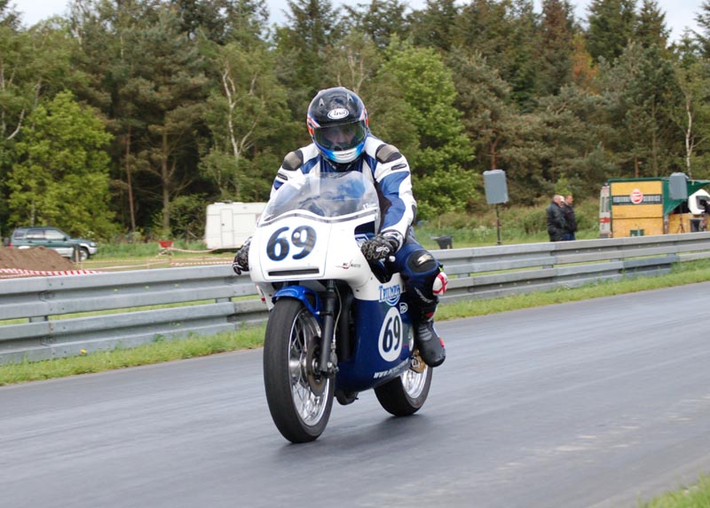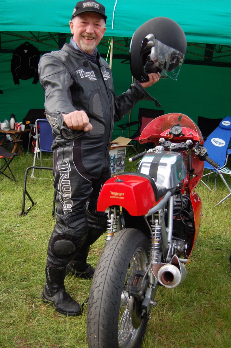 Lige bagved HJ kom Brian på sin Trident #69. Næsten samme resultat igen. 750 cc vindes
