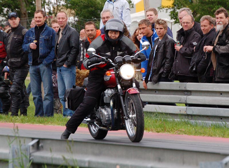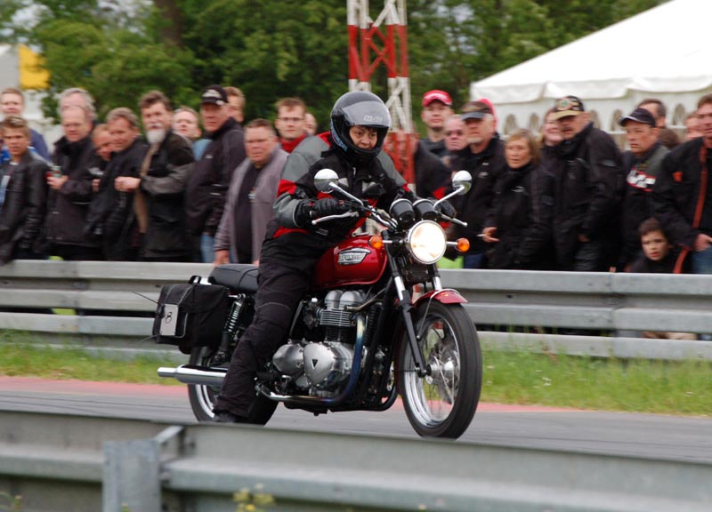 Lørdag er det tid til 1/8 Mile Drag Race. Nina kører på sin standard Bonneville med