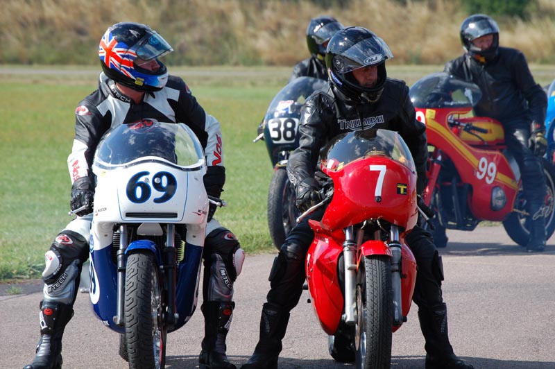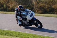Videre til Brian i 750cc klassen. Han kører den flotte blå/hvide Trident med #69.
