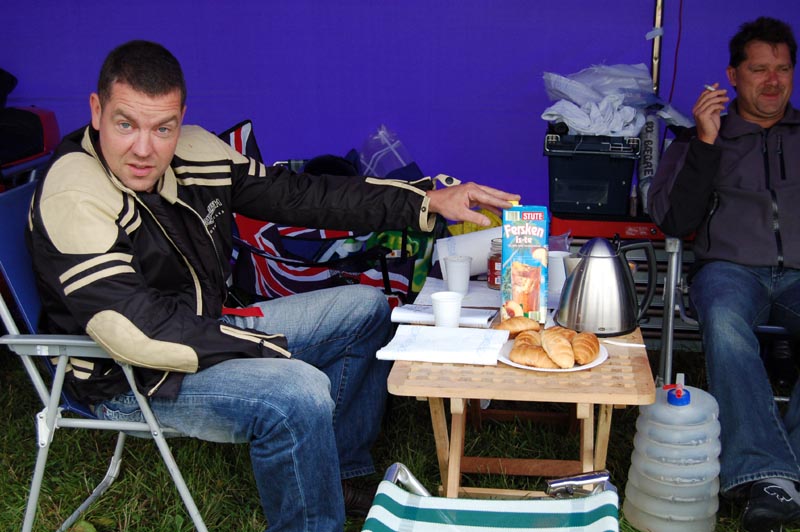 campingpladsen om morgenen før løbet. HJ sluttede dagens race på en 5'e plads,