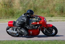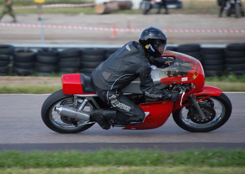 på den røde Triumph Metisse med #7. Fredag havde træning og tidskvalificering på programmet.