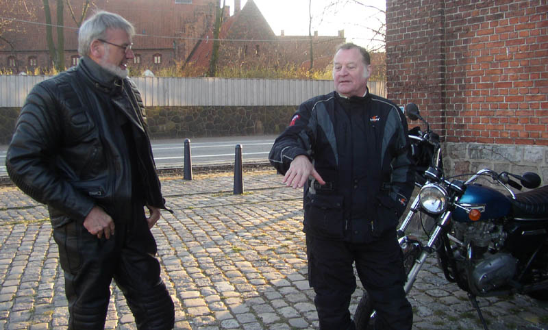 og de to gamle kendte John på en grøn Speed Triple fra 1998 og Kristoffer på en blå