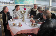 fik en nydelig æblekage med creme og chokoladesovs. Til dette var der meget snak og grin.