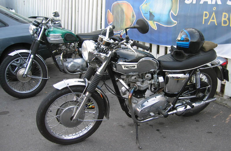 Per på sin flotte Trident fra 1975, Bo (ny mand, velkommen!) på en Bonneville 650cc fra 1969 der var
