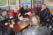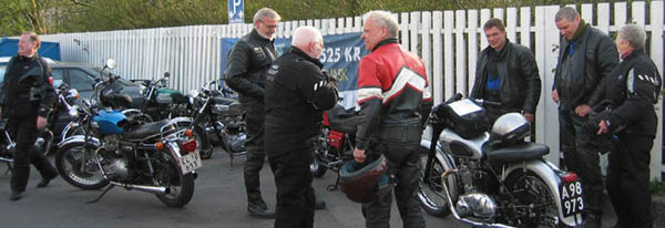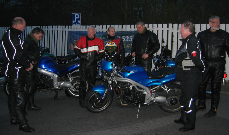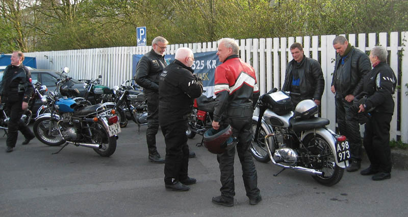 Lidt hyggesnak, og så startede vi maskinerne for at køre lidt småveje til Hedehusene.