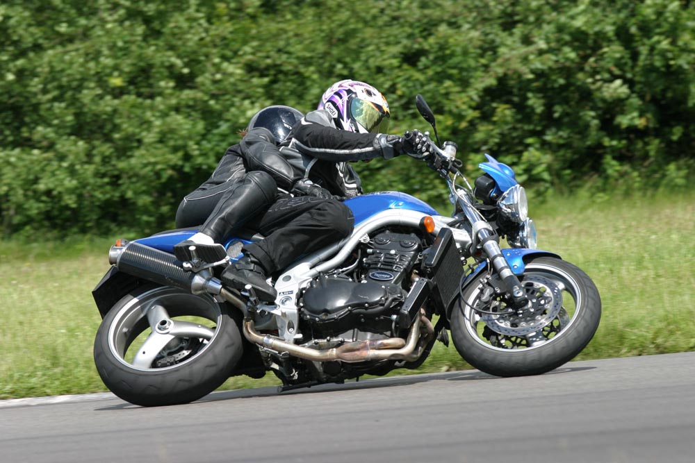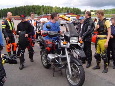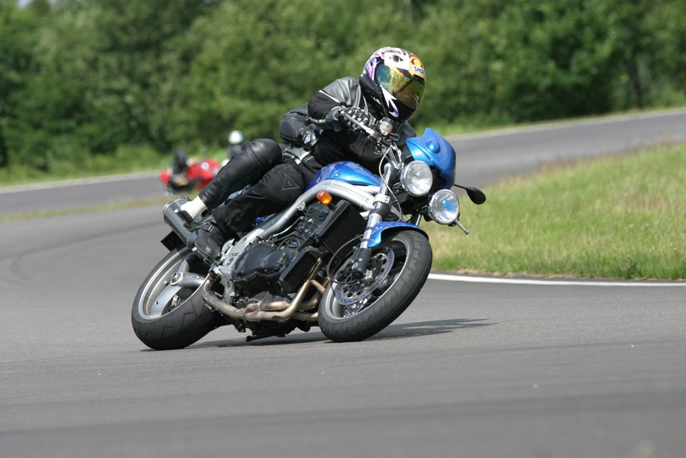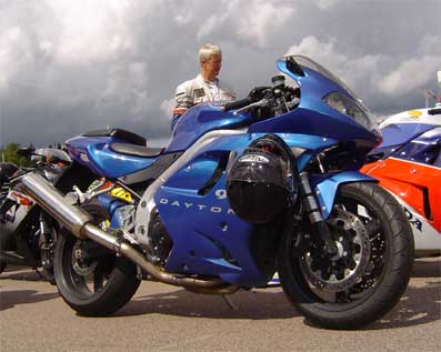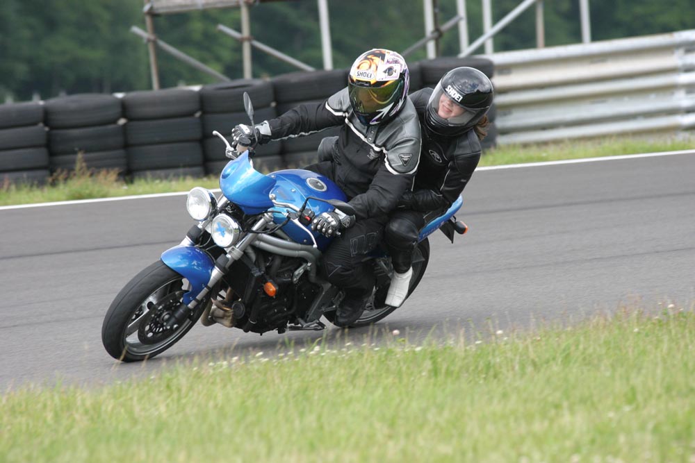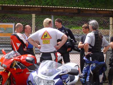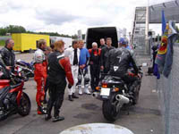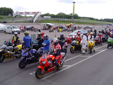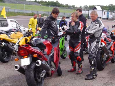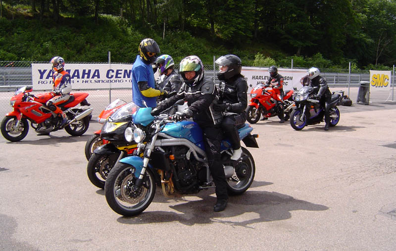 1) Rød gruppe kører til. 2) Triumph Daytona 955, 2002 i pit. 3) Triumph Sprint 900, 1993 i pit.