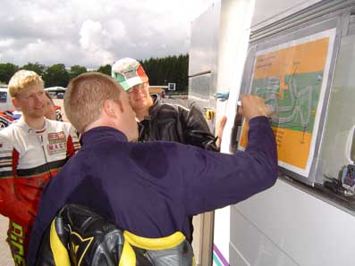 Herefter gør man sig klar til kørsel. Gruppen stiller op ved indkørsel til bane og venter på klartegn.