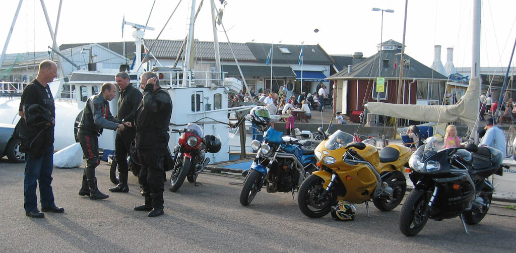 Drejede in på tanken og der stor fire andre cykler. Der var Jan på sin gule Daytona 955cc fra 1998,