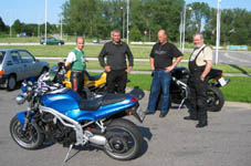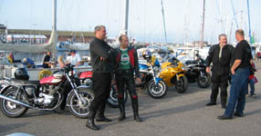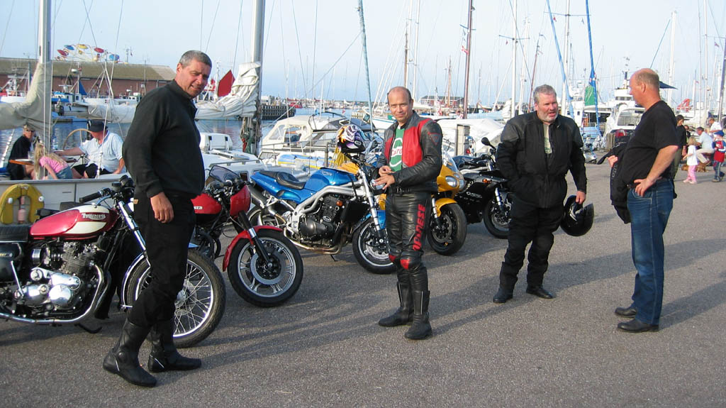 Per på en Trident T160 fra 1975, Ib (eller Darth Vader) på sin sorte Daytona 955cc fra 2003,