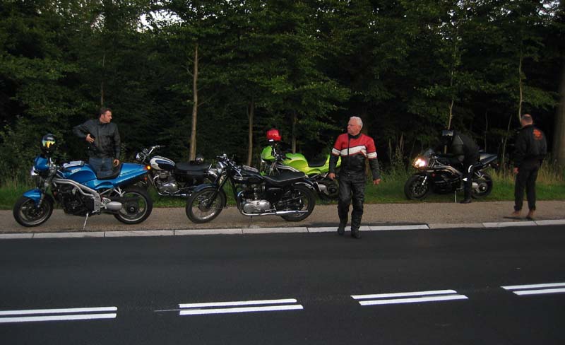 Så vi var fem Triumph rotter der tog norpå gennem skoven til Kongevejen. Midt i skoven km vi ud for
