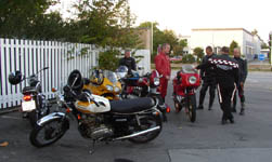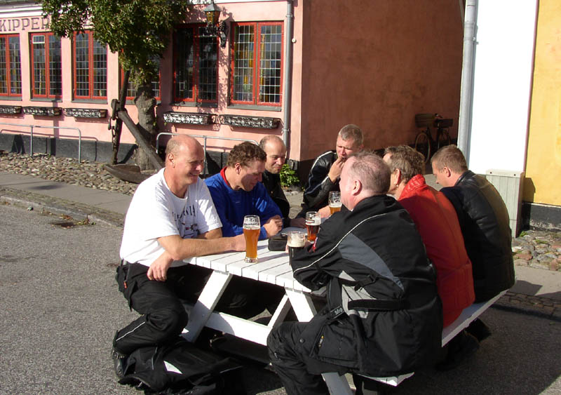 Klokken 13.00 dut kører vi syv maskiner mod Køge ad små snoede gedestier, og vi følger planlagt rute,
