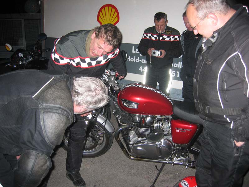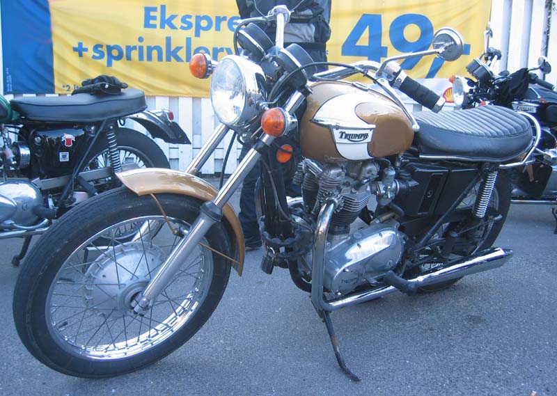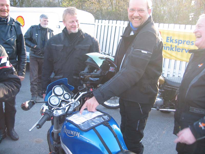 klassiske Triumph. Det var godt fordi han kunne underholde os på turen. Når han
